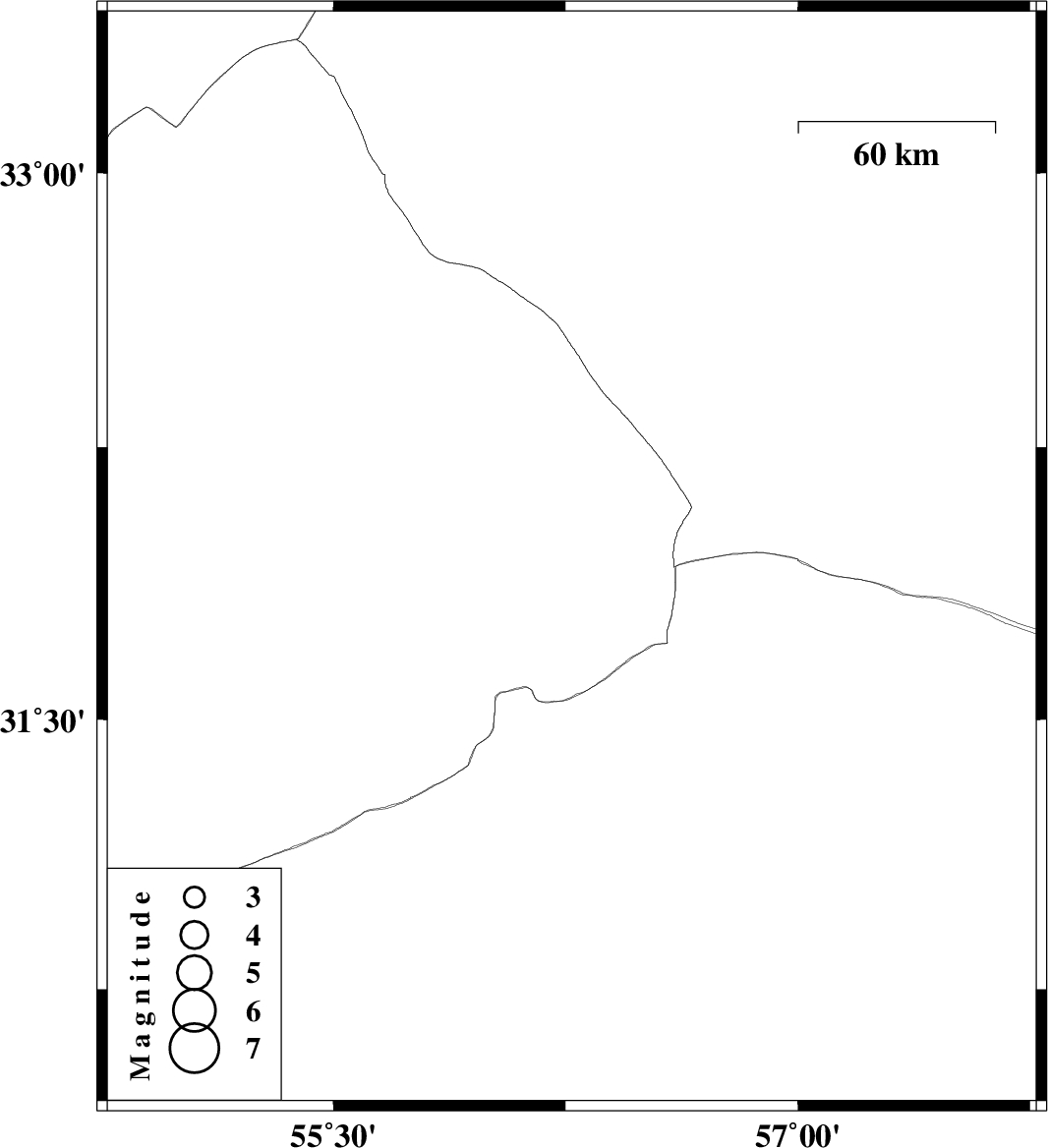 | 2009/02/03 | 02:31:35.4 | 06:01:35.4 | 31.94 | 56.27 | 15 | ML:3 | 90 km North-East of Bafq, Yazd Province |
