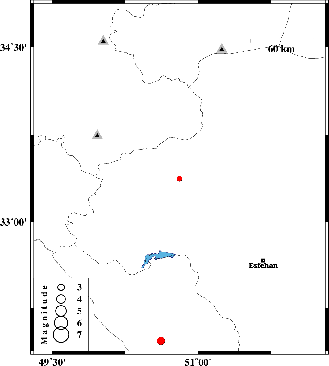| 2009/01/28 | 06:42:20.3 | 10:12:20.3 | 31.96 | 50.62 | 14 | ML:3.6 | 4 km Ardel, Chaharmahal Bakhtiari Province |