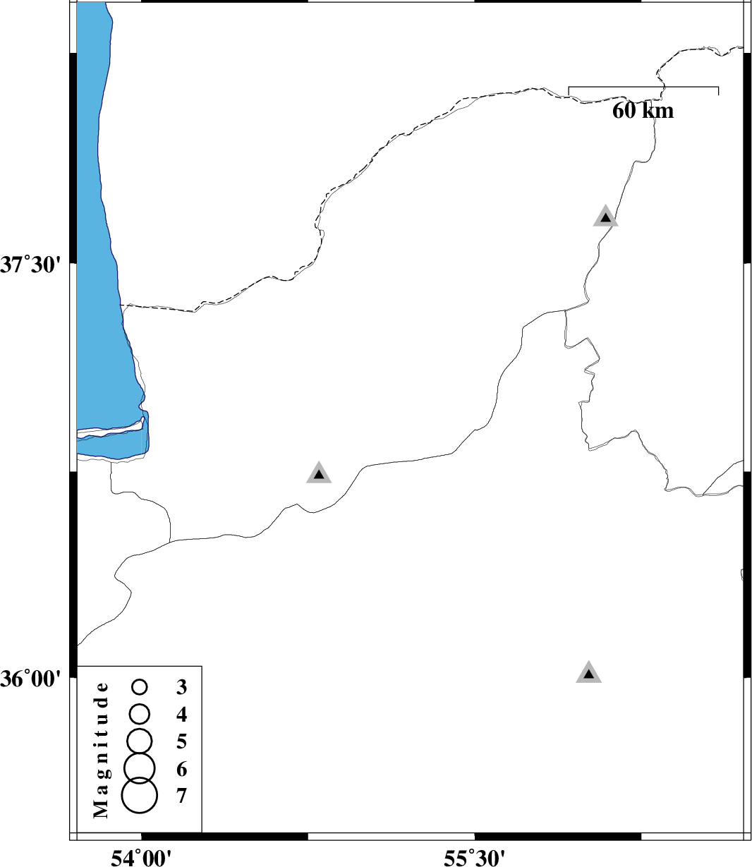 | 2009/02/06 | 00:43:24.1 | 04:13:24.1 | 36.93 | 55.21 | 14 | ML:3.3 | 11 km Ramian, Golestan Province |