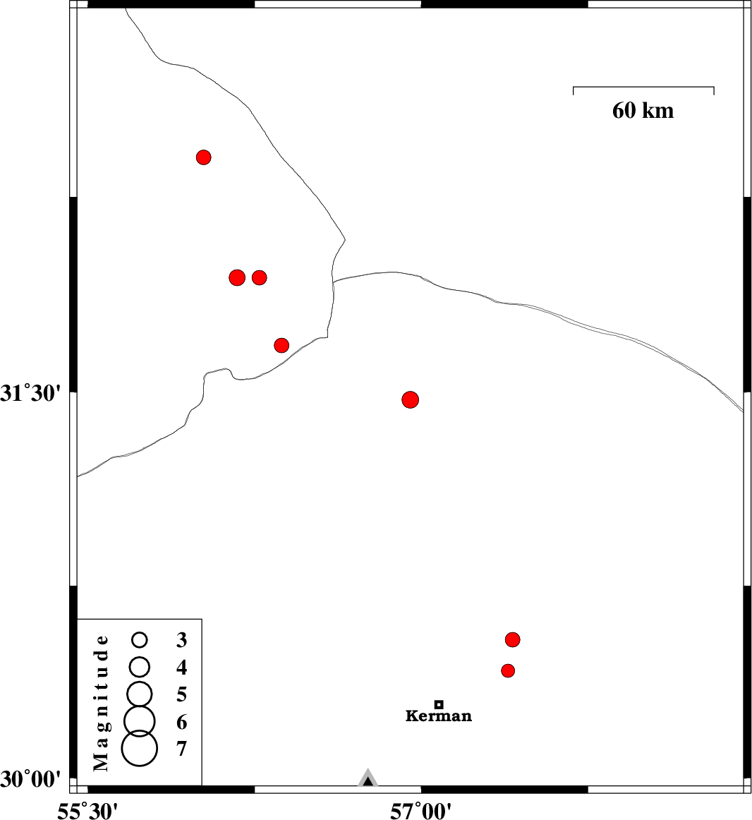 | 2009/02/08 | 10:32:06.0 | 14:02:06.0 | 30.54 | 57.41 | 7 | ML:3 | 41 km North-East of Kerman, Kerman Province | ||