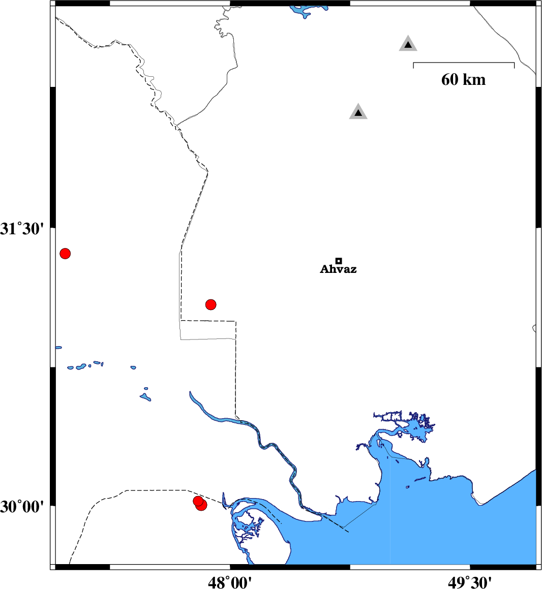 | 2009/02/10 | 15:30:25.2 | 19:00:25.2 | 31.18 | 48.41 | 14 | ML:2.8 | 30 km South-West of Ahvaz, Khoozestan Province | ||
