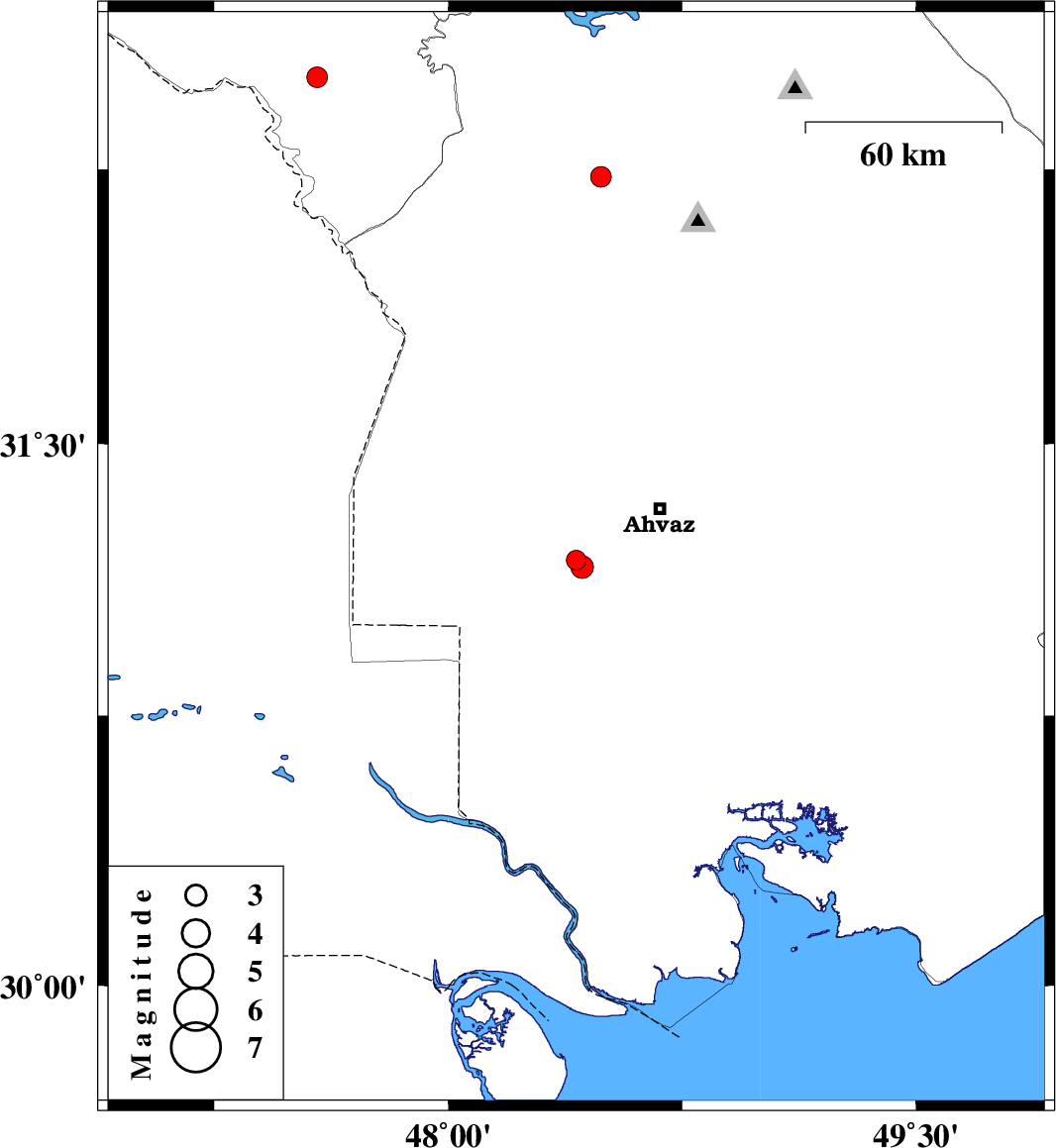 | 2009/02/07 | 10:31:09.3 | 14:01:09.3 | 31.16 | 48.43 | 30 | ML:3.2 | 29 km South-West of Ahvaz, Khoozestan Province |