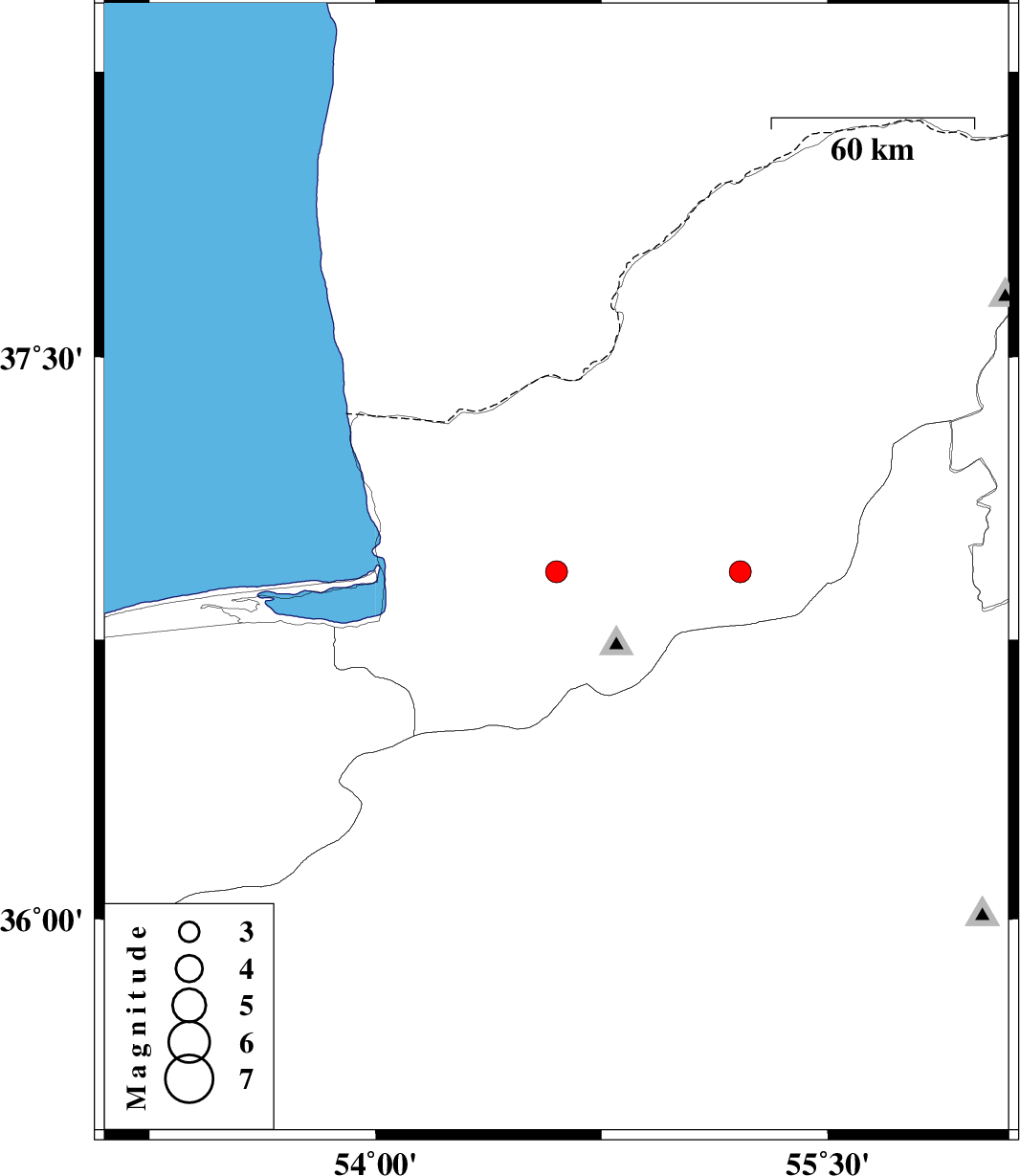 | 2009/02/06 | 00:43:24.1 | 04:13:24.1 | 36.93 | 55.21 | 14 | ML:3.3 | 11 km Ramian, Golestan Province |