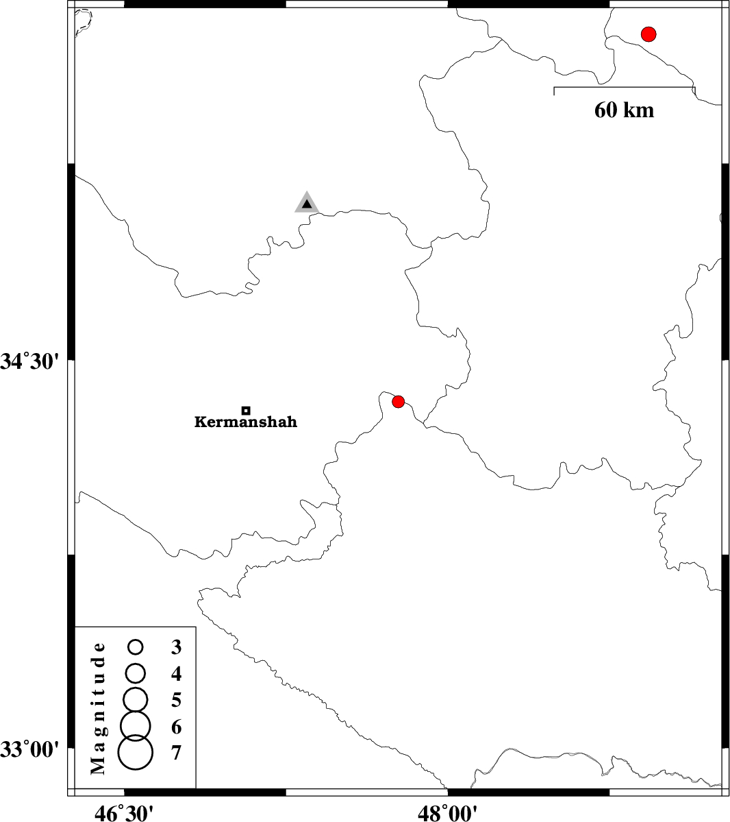 | 2009/02/12 | 11:04:20.4 | 14:34:20.4 | 34.34 | 47.77 | 18 | ML:2.5 | 17 km South of Sahneh, Kermanshah Province | ||