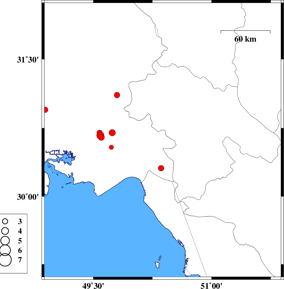 2009/02/12 00:54:52.4 04:24:52.4 30.9149.6745 ML:3.2 17 km North of Omidiyeh, Khoozestan Province