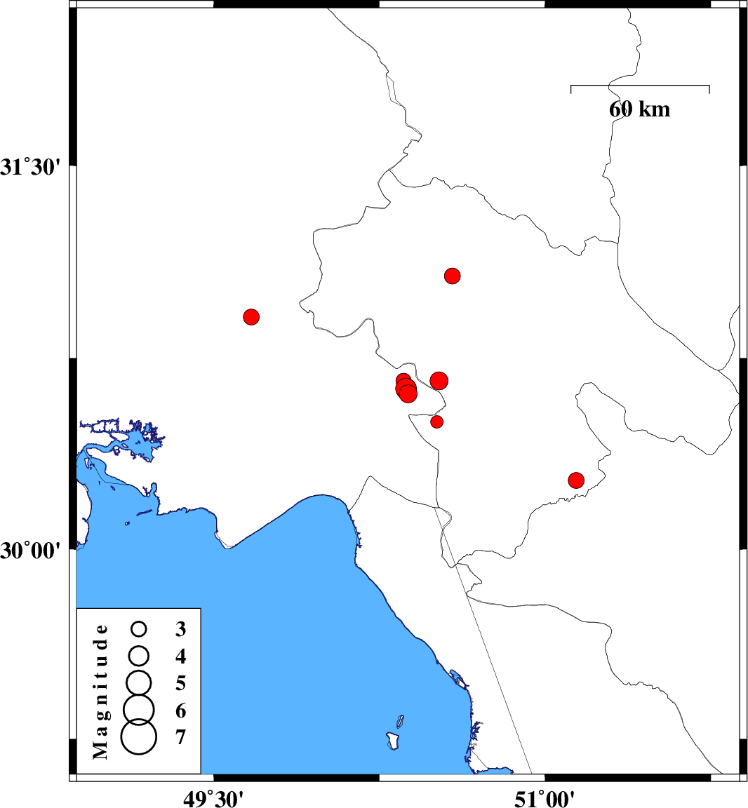 2009/02/18 23:49:48.6 03:19:48.6 30.550.5144 ML:2.5 27 km East of Behbahan, Khoozestan Province