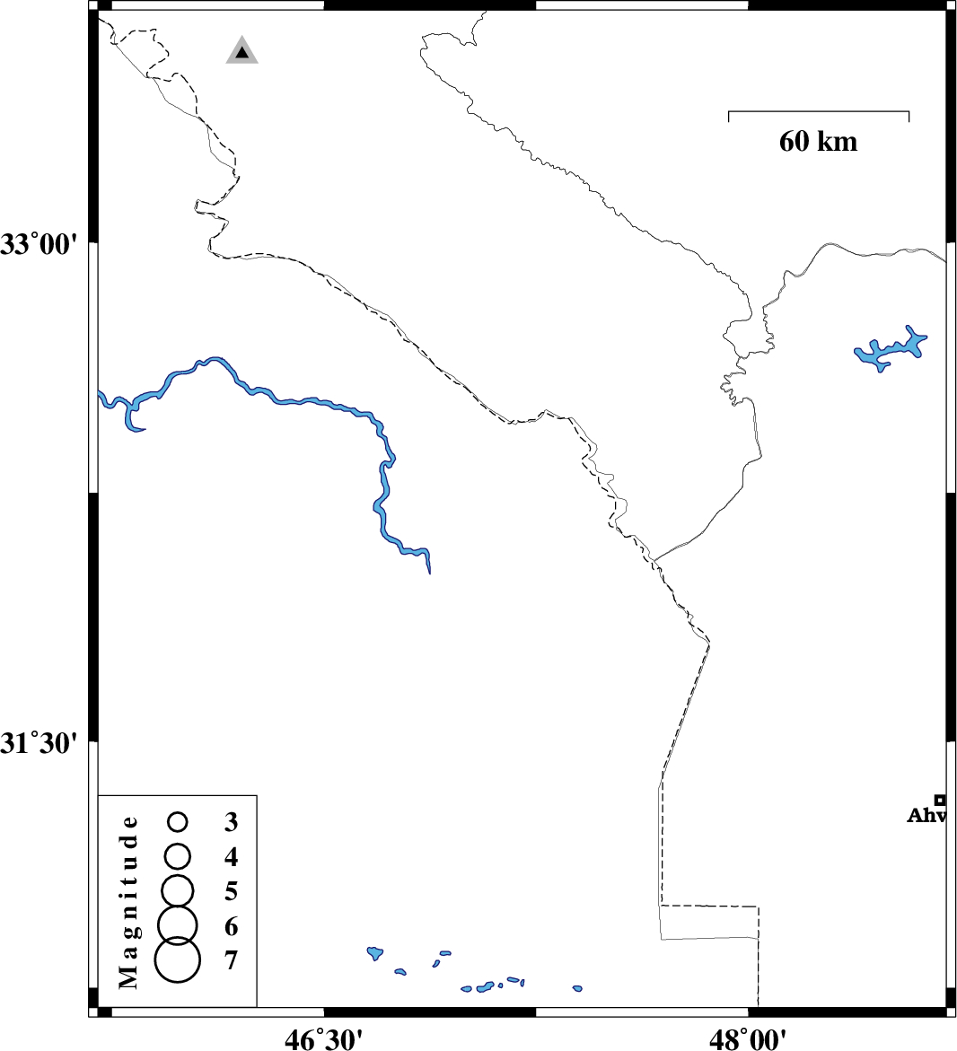 | 2009/02/23 | 05:41:07.4 | 09:11:07.4 | 32.19 | 47.2 | 46 | ML:3 | 56 km South of Dehloran, Ilam Province |