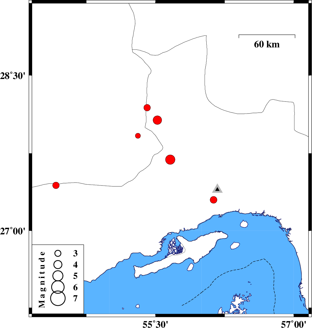 2009/02/23 11:11:00.5 14:41:00.5 27.6955.6618 ML:4.7 73 km South-West of Hajiabad, Hormozgan Province