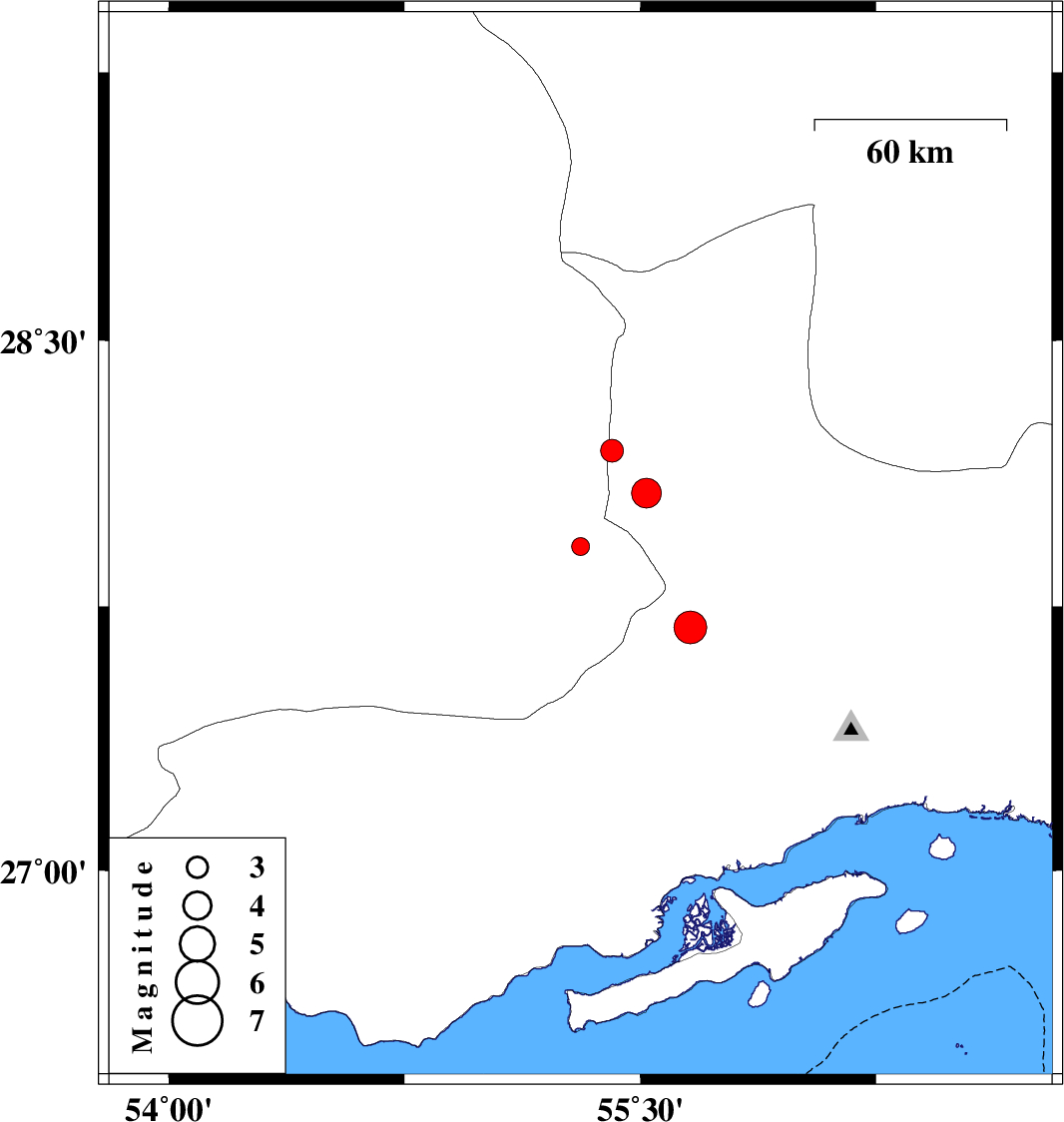 2009/02/23 11:11:00.5 14:41:00.5 27.6955.6618 ML:4.7 73 km South-West of Hajiabad, Hormozgan Province