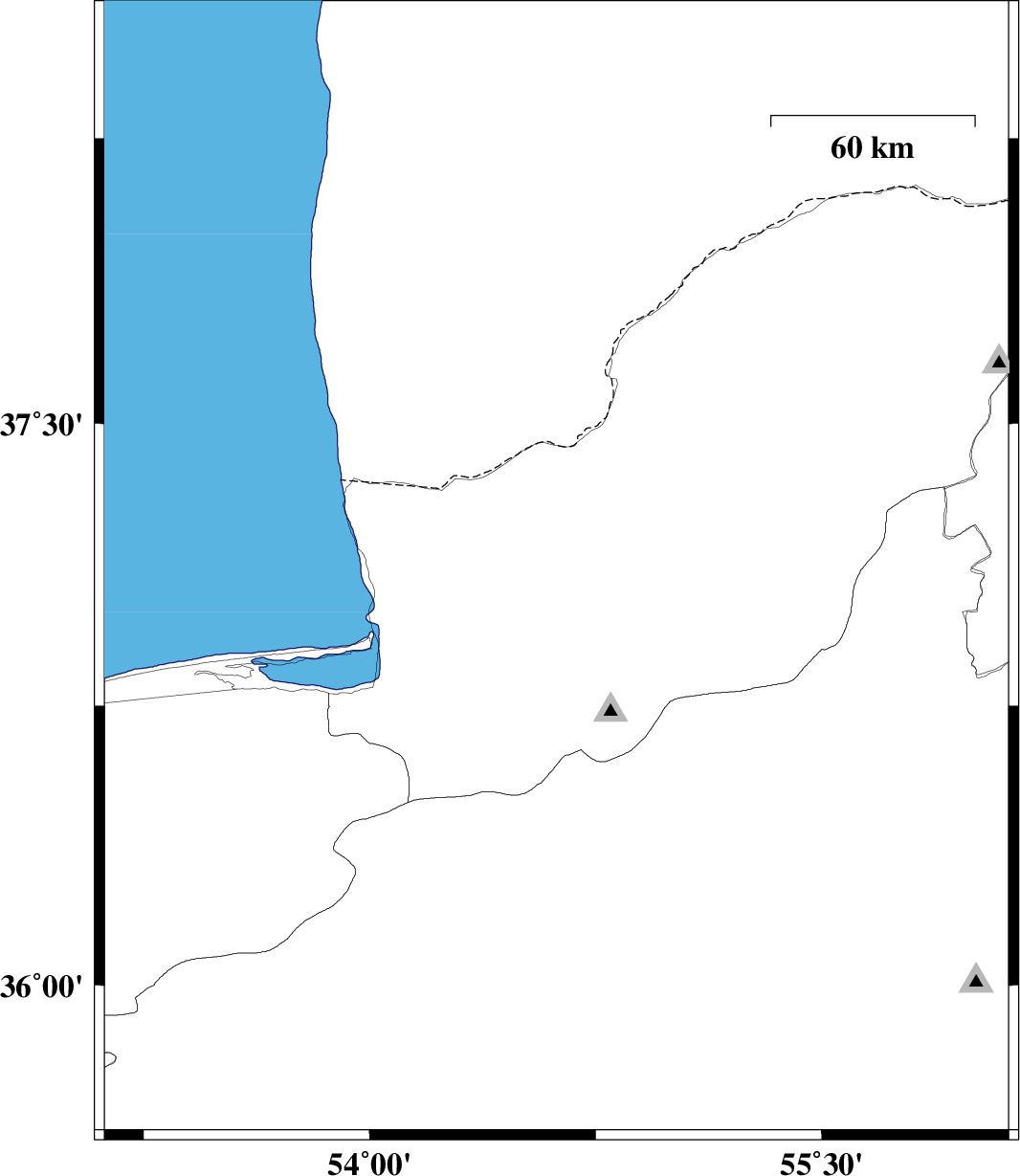 | 2009/02/25 | 03:42:20.2 | 07:12:20.2 | 37.11 | 54.62 | 26 | ML:2.9 | 18 km East of Aq Qaleh, Golestan Province | ||