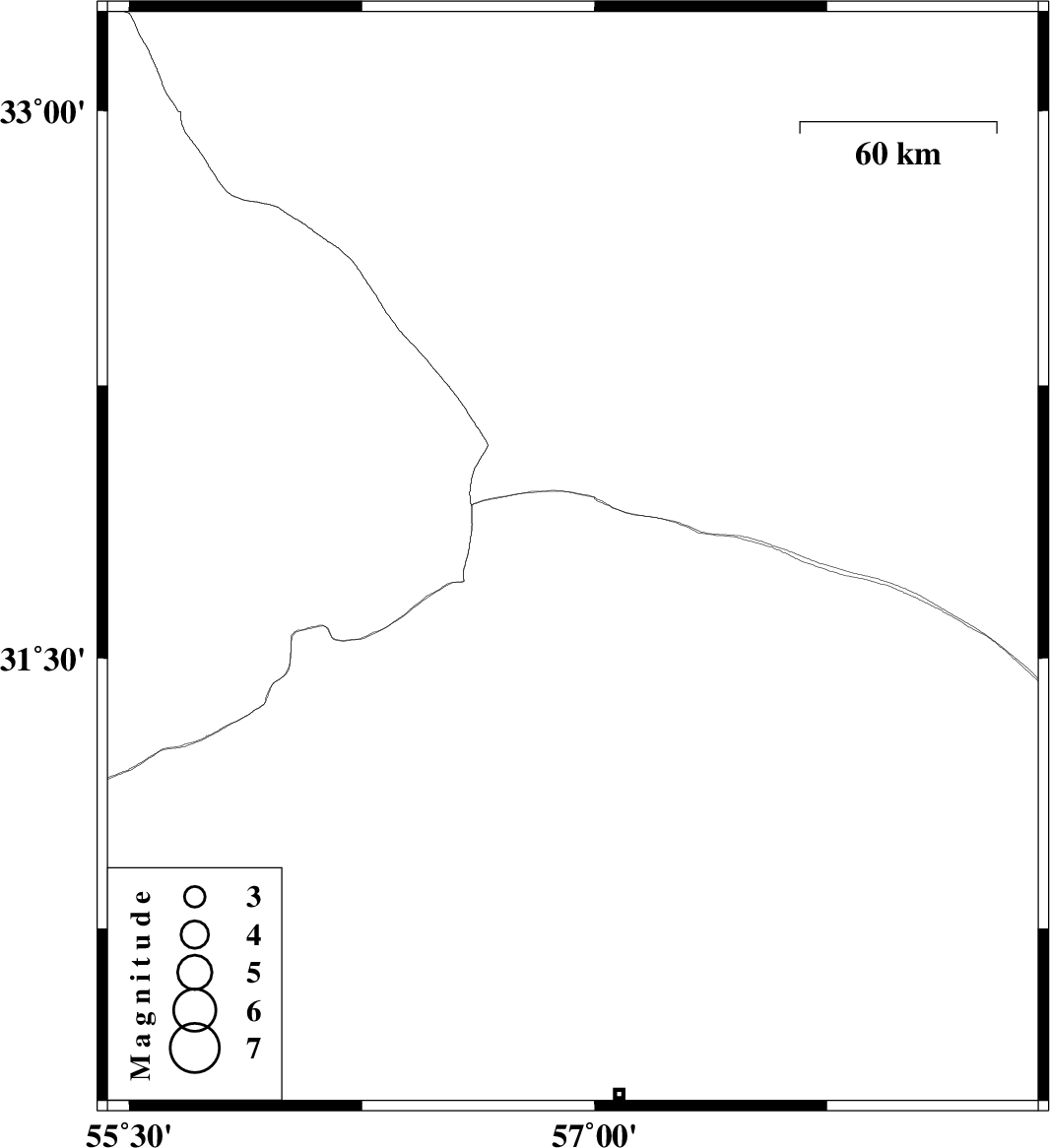 | 2009/02/27 | 09:19:12.7 | 12:49:12.7 | 31.77 | 56.93 | 16 | ML:3.1 | 57 km North-East of Ravar, Kerman Province |