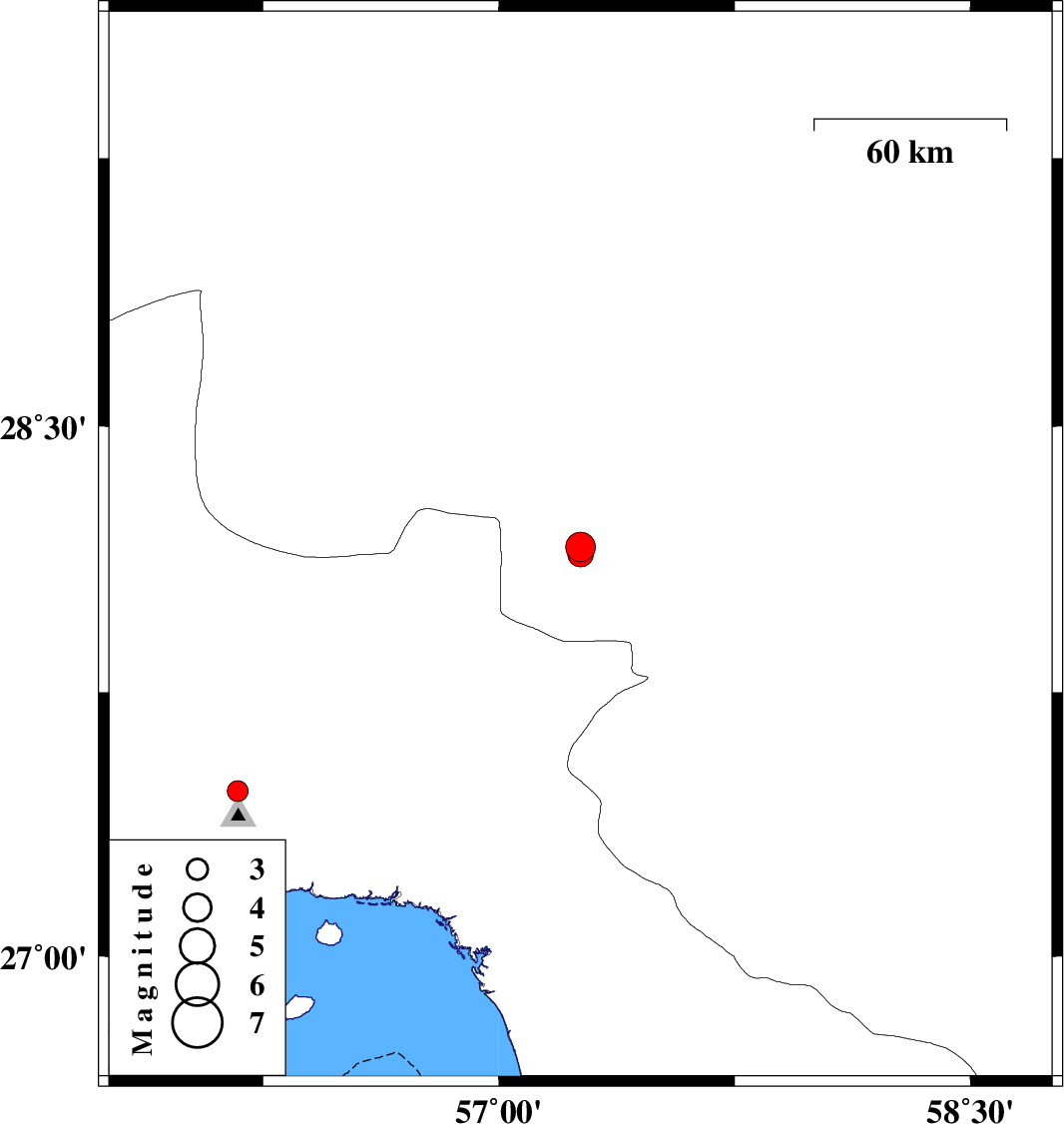 | 2009/03/03 | 03:59:50.8 | 07:29:50.8 | 28.16 | 57.26 | 14 | ML:4.2 | 47 km North-West of Kahnuj, Kerman Province | ||