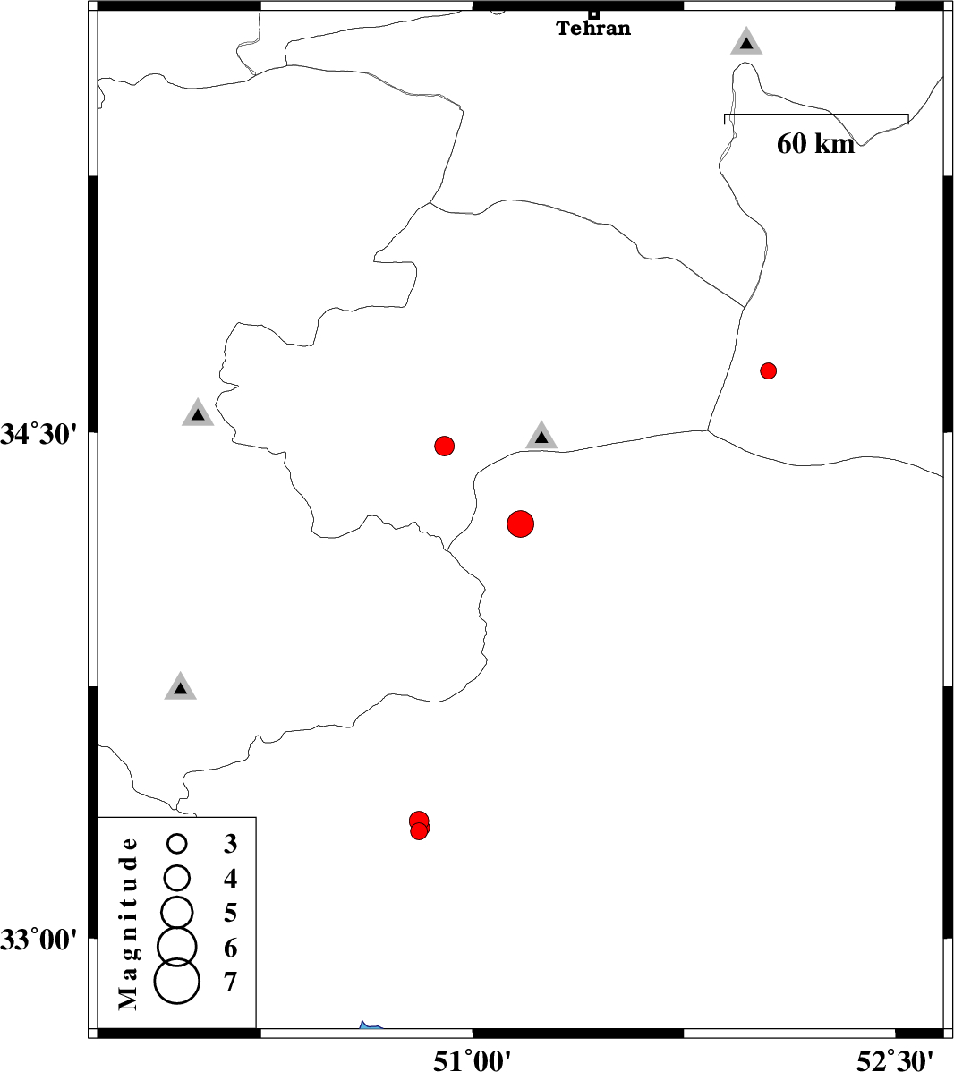 | 2009/02/26 | 08:17:22.1 | 11:47:22.1 | 34.68 | 52.05 | 18 | ML:2.5 | 65 km South-West of Garmsar, Semnan Province |