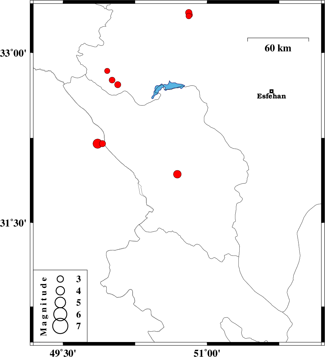 | 2009/03/01 | 06:51:22.3 | 10:21:22.3 | 32.84 | 49.96 | 22 | ML:2.6 | 17 km West of Fereydunshahr, Esfahan Province | ||