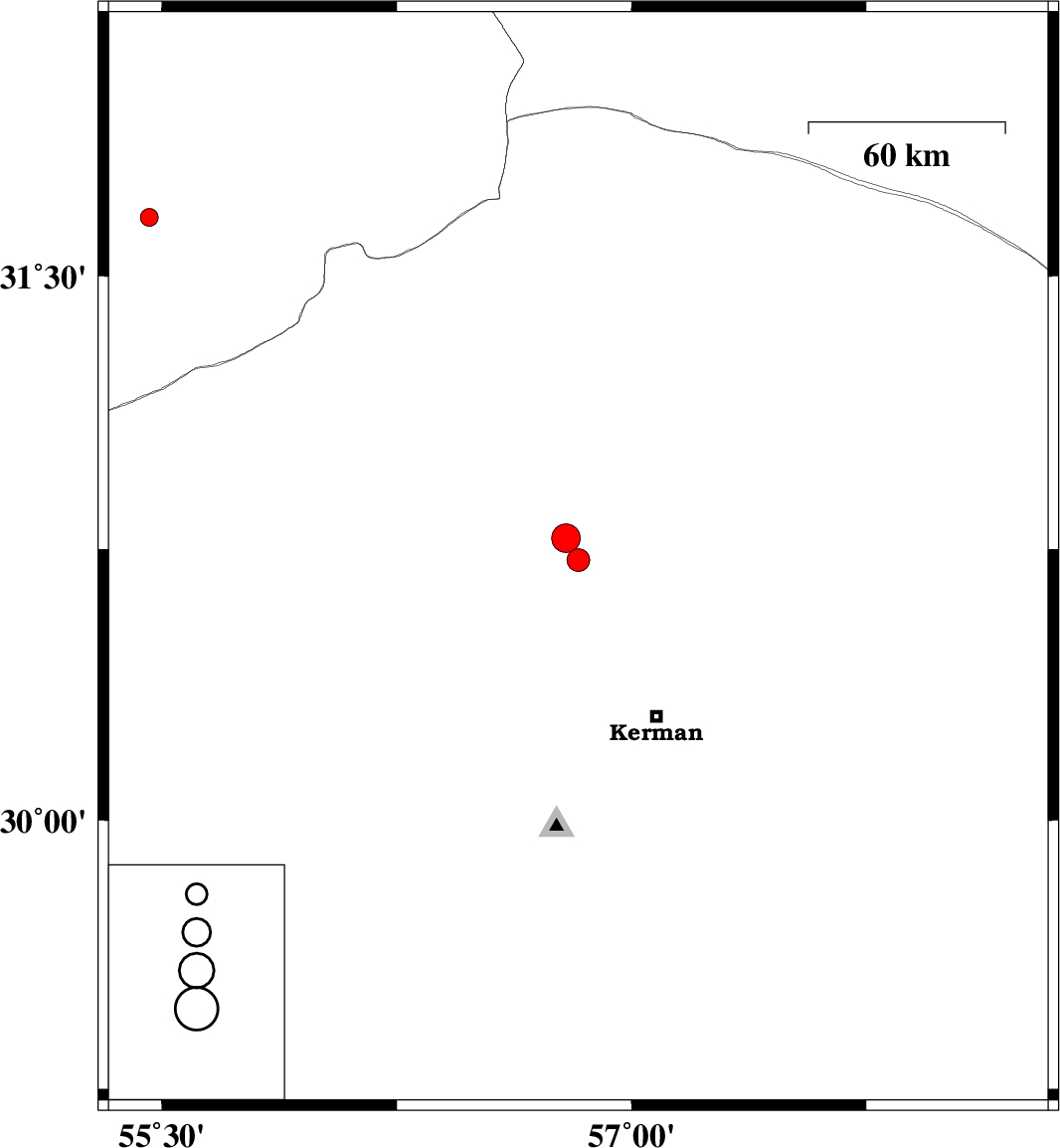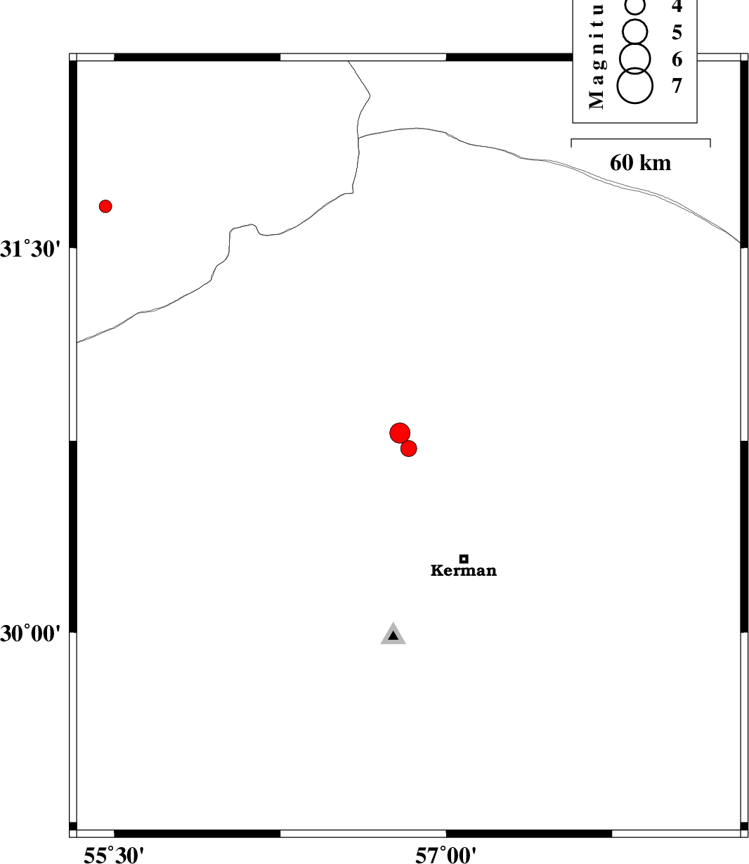 | 2009/03/07 | 06:47:07.6 | 10:17:07.6 | 30.78 | 56.79 | 8 | ML:4.1 | 21 km East of Zarand, Kerman Province |