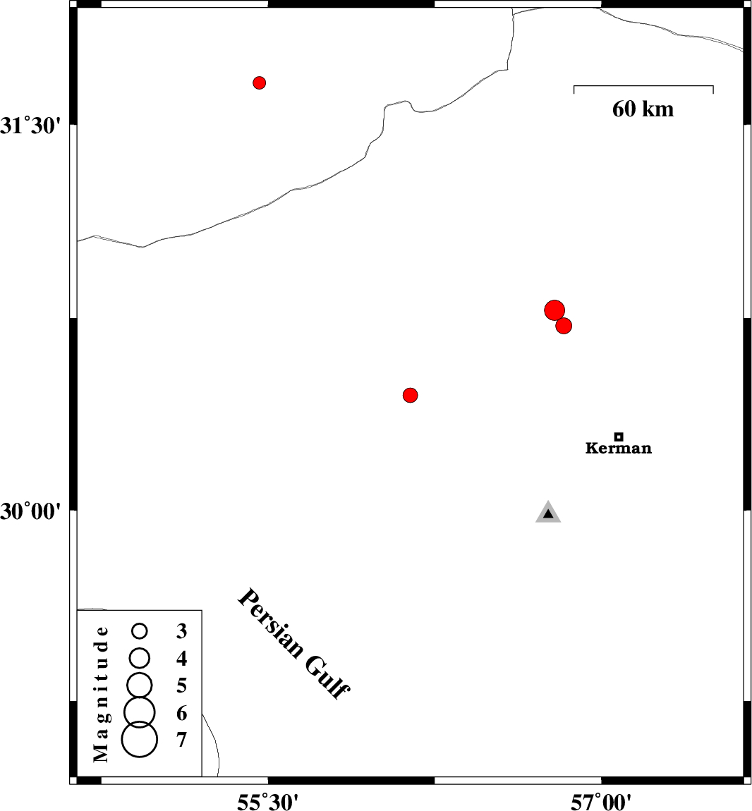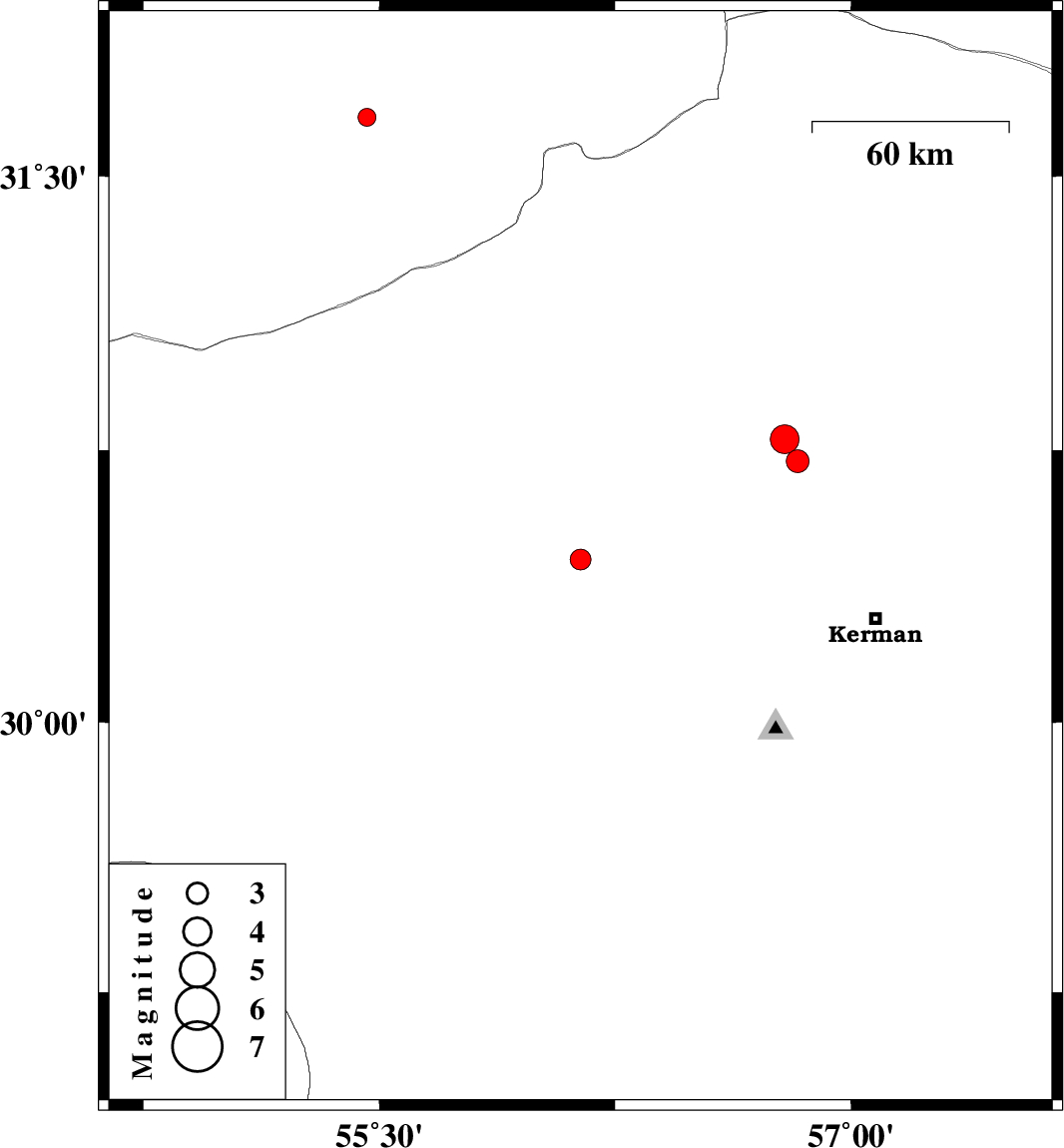 | 2009/03/11 | 04:27:57.3 | 07:57:57.3 | 30.45 | 56.14 | 14 | ML:2.9 | 14 km East of Rafsanjan, Kerman Province | ||