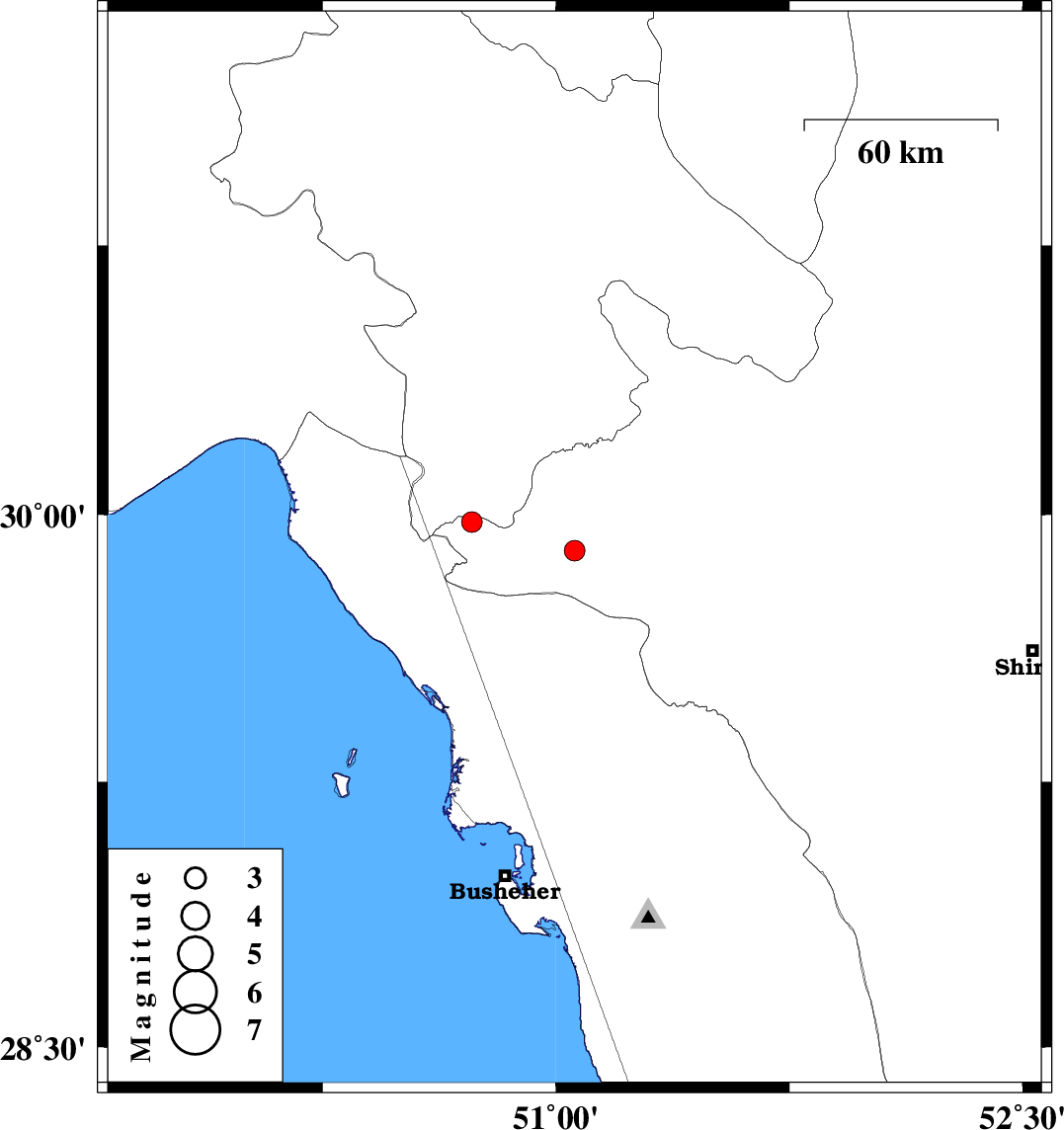 | 2009/03/13 | 01:28:53.1 | 04:58:53.1 | 29.9 | 51.06 | 15 | ML:2.9 | 50 km South-West of Nurabad, Fars Province | ||
