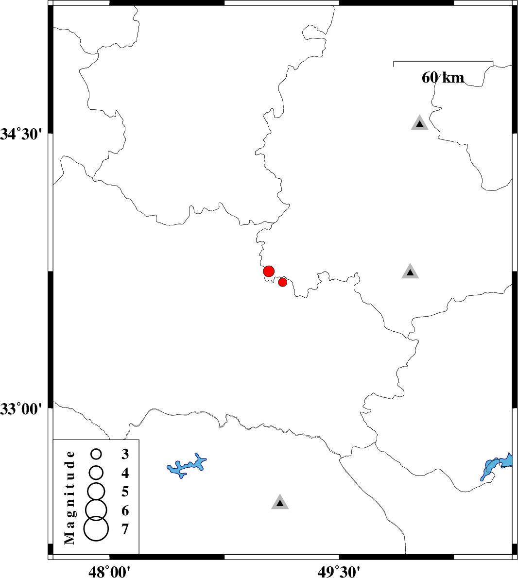 | 2009/03/13 | 00:20:15.7 | 03:50:15.7 | 33.75 | 49.04 | 16 | ML:3.2 | 30 km South-East of Borujerd, Lorestan Province |