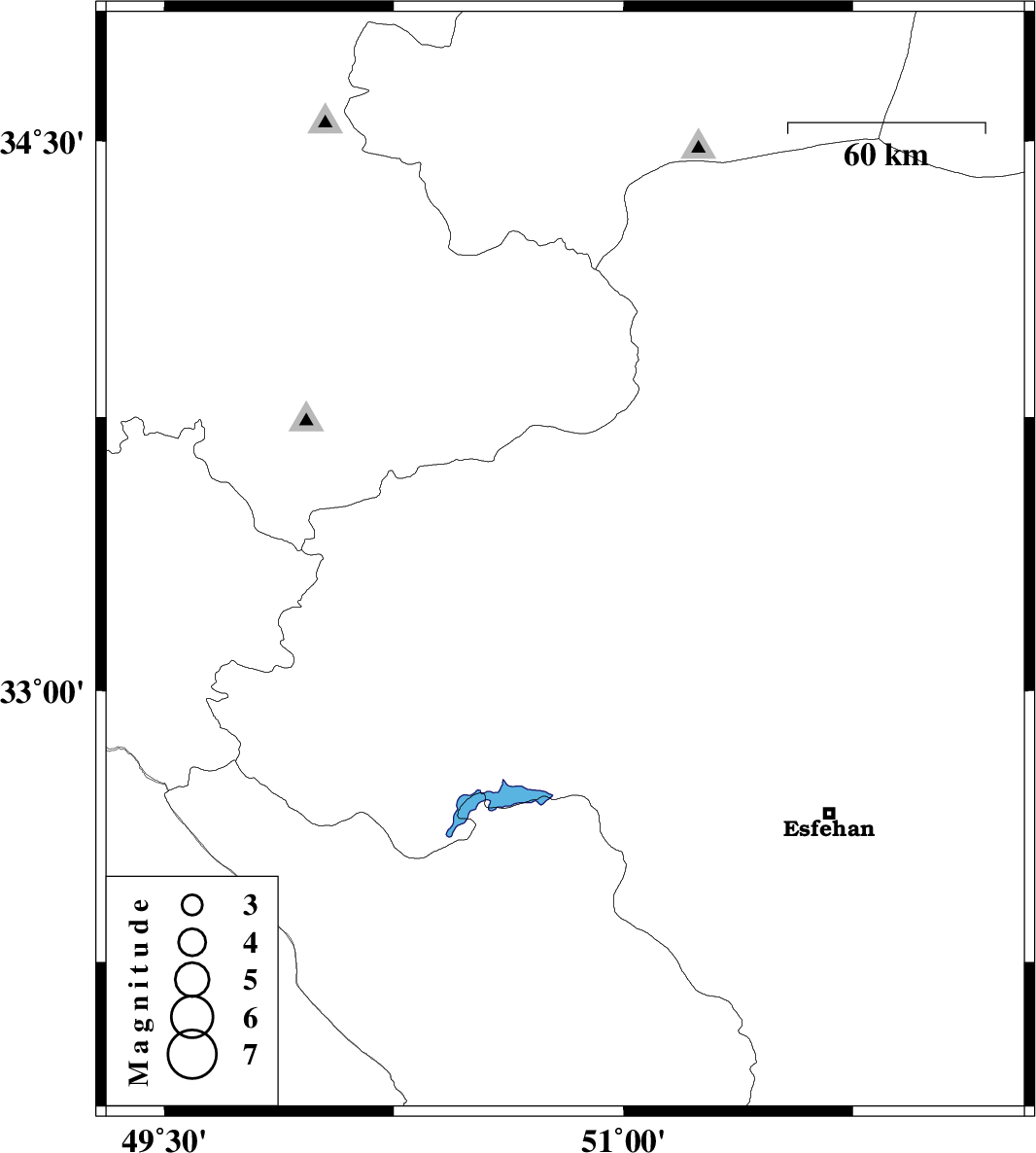 | 2009/03/16 | 11:30:40.6 | 15:00:40.6 | 33.35 | 50.81 | 15 | ML:3.2 | 47 km North-East of Khvansar, Esfahan Province |