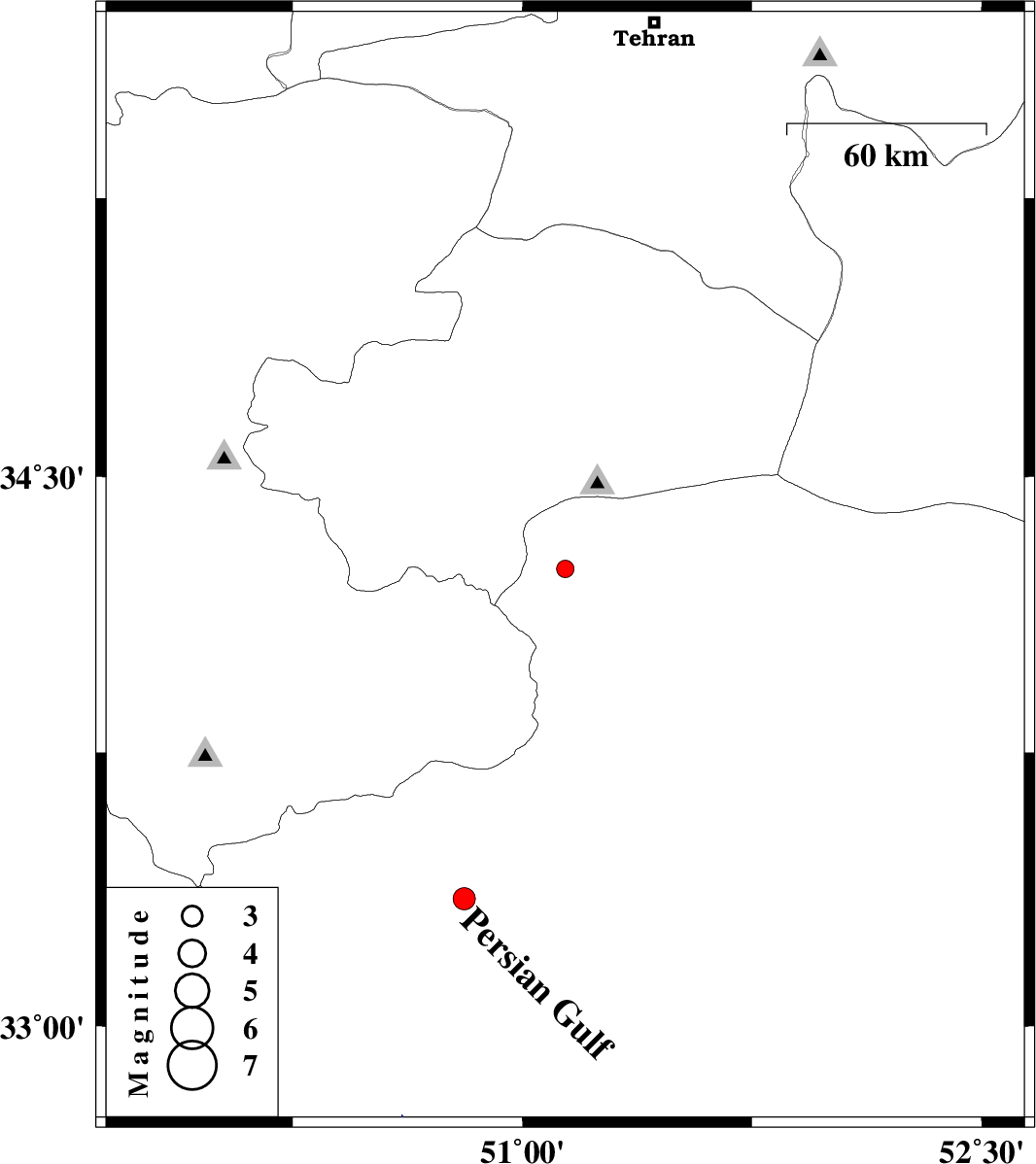 | 2009/03/16 | 11:30:40.6 | 15:00:40.6 | 33.35 | 50.81 | 15 | ML:3.2 | 47 km North-East of Khvansar, Esfahan Province |