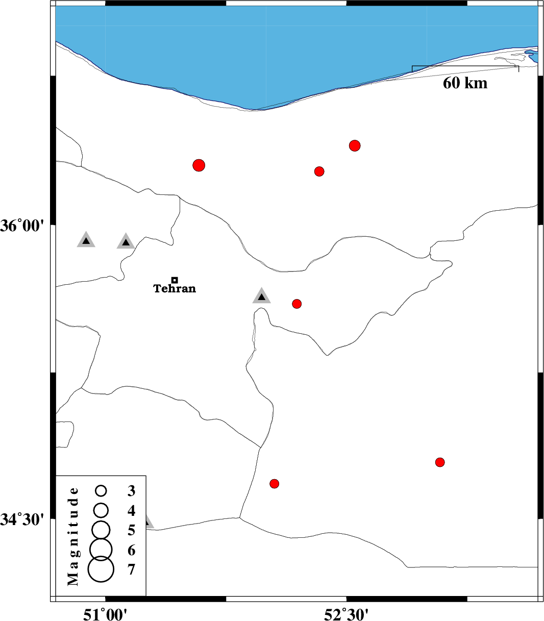 | 2009/02/26 | 08:17:22.1 | 11:47:22.1 | 34.68 | 52.05 | 18 | ML:2.5 | 65 km South-West of Garmsar, Semnan Province |