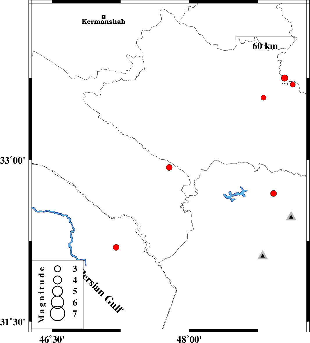 | 2009/03/13 | 00:20:15.7 | 03:50:15.7 | 33.75 | 49.04 | 16 | ML:3.2 | 30 km South-East of Borujerd, Lorestan Province | ||