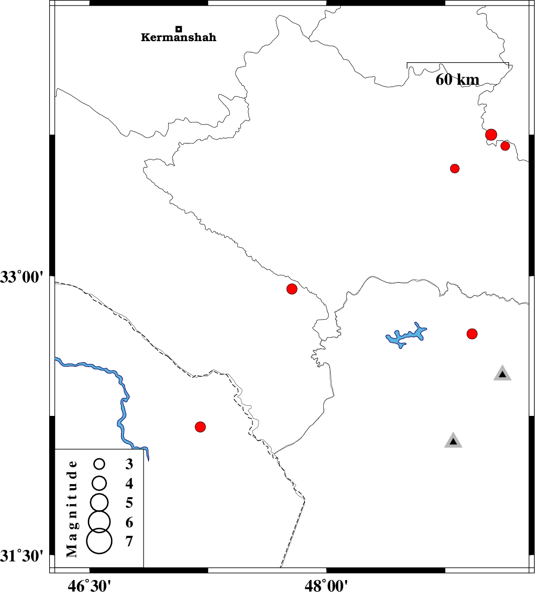 | 2009/03/21 | 21:13:01.0 | 01:43:01.0 | 32.93 | 47.78 | 14 | ML:3 | 25 km South of Pol-e dokhtar, Lorestan Province | ||