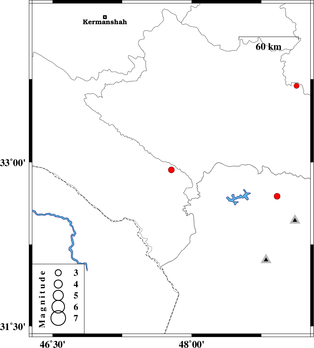 | 2009/03/14 | 17:50:06.4 | 21:20:06.4 | 33.69 | 49.13 | 15 | ML:2.6 | 23 km North of Dorud, Lorestan Province |