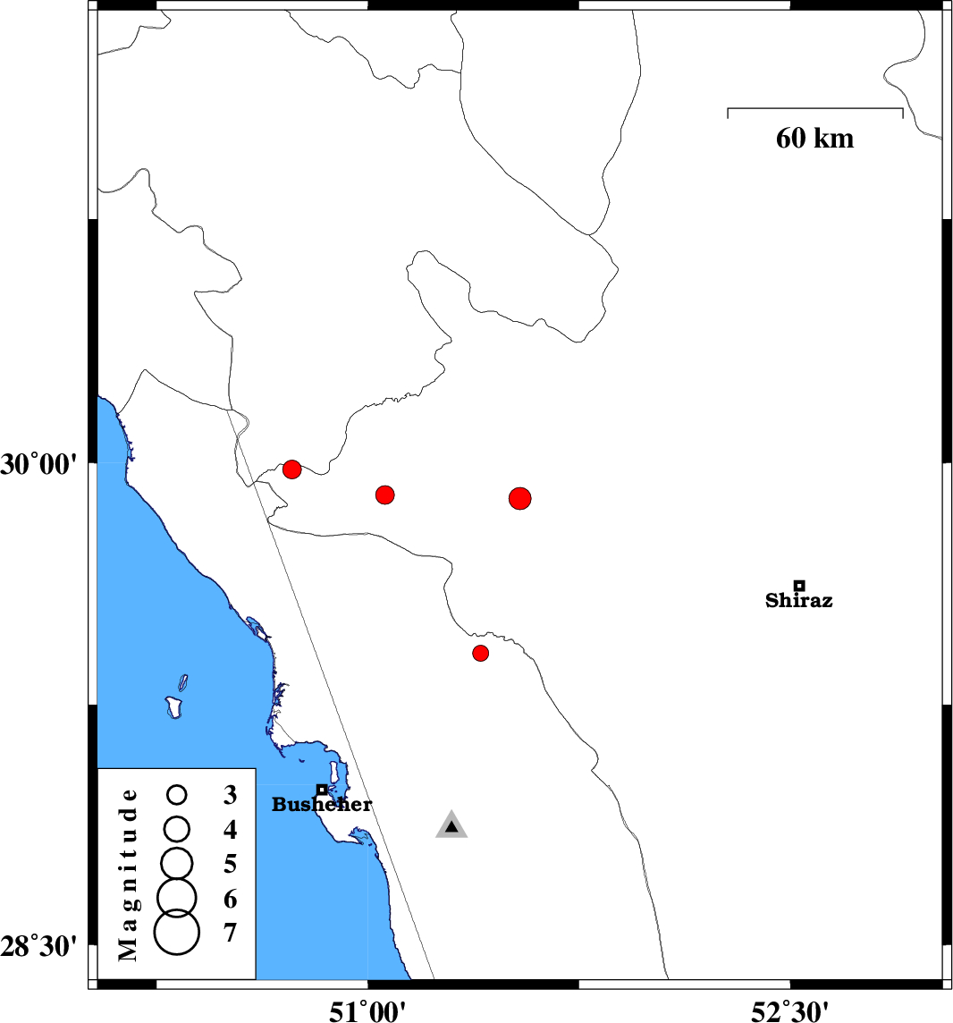 | 2009/03/20 | 23:24:10.6 | 02:54:10.6 | 29.41 | 51.4 | 18 | ML:2.6 | 25 km North-East of Borazjan, Bushehr Province | ||