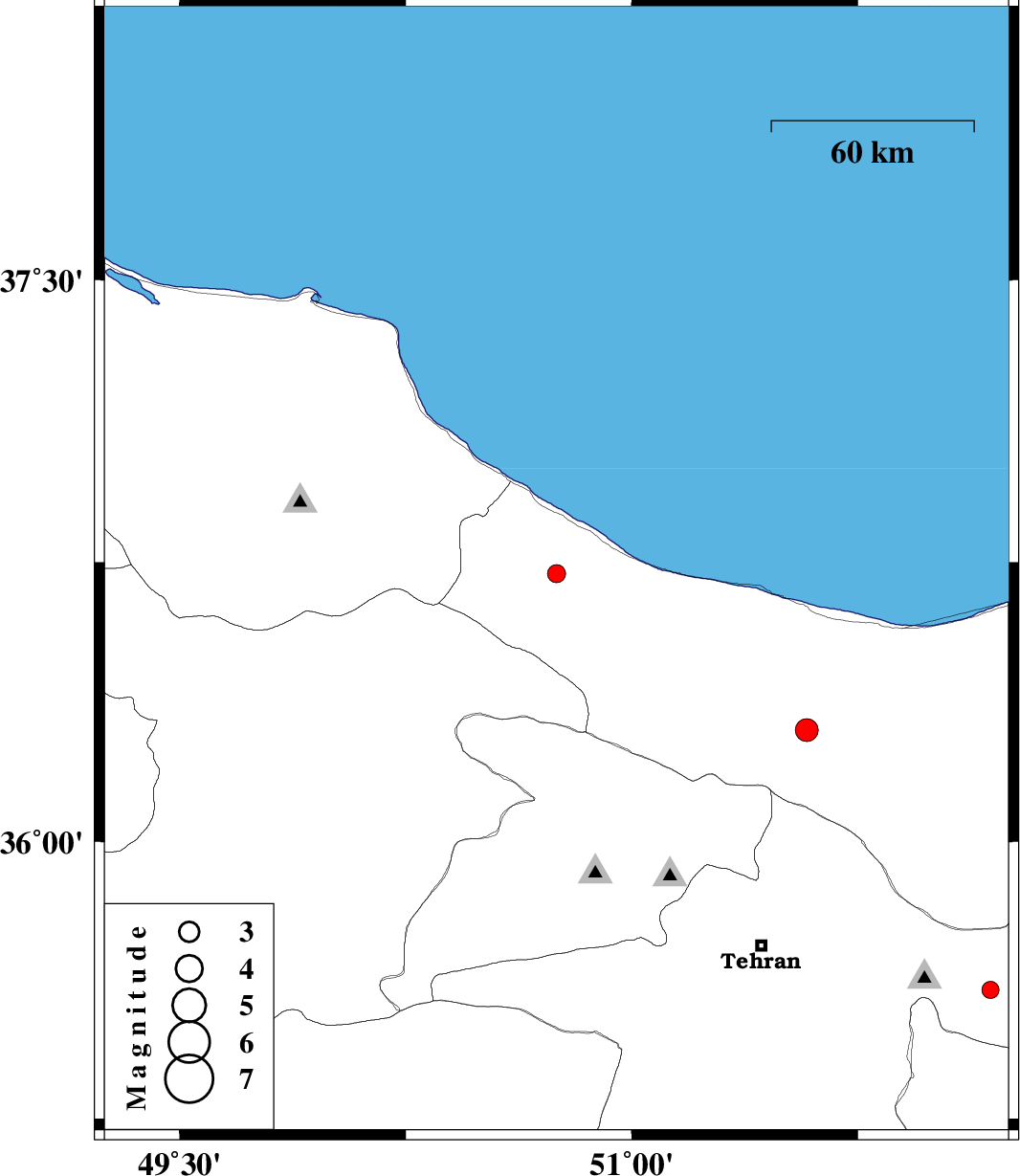 | 2009/03/19 | 13:48:35.3 | 17:18:35.3 | 36.3 | 51.58 | 14 | ML:3.4 | 38 km South of Nowshahr, Mazandaran Province |