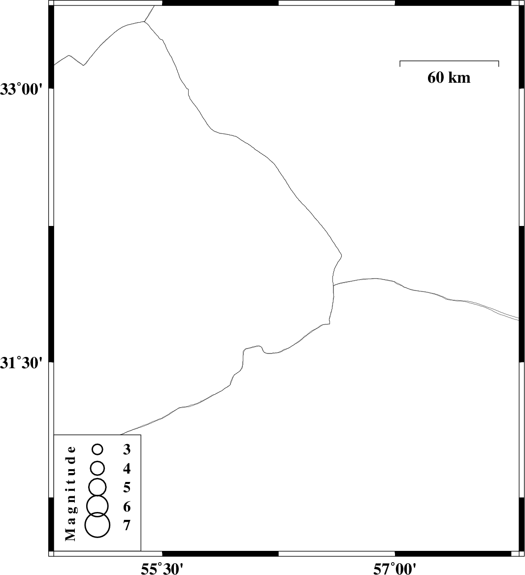 | 2009/03/24 | 20:32:53.2 | 01:02:53.2 | 31.95 | 56.3 | 8 | ML:3.2 | 90 km North-West of Ravar, Kerman Province |