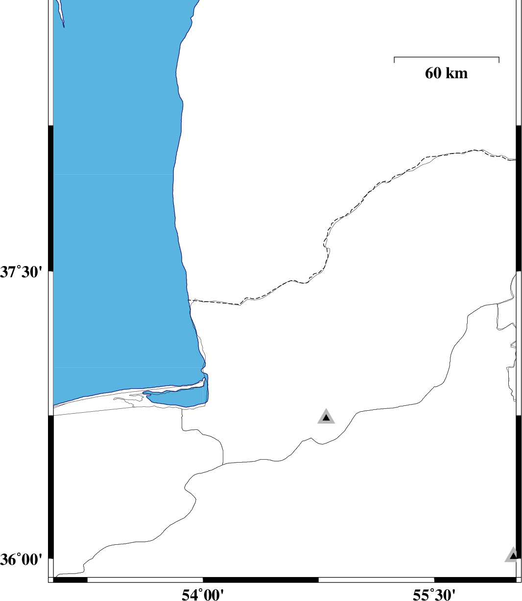 | 2009/03/26 | 07:05:56.7 | 11:35:56.7 | 37.4 | 54.53 | 15 | ML:2.7 | 43 km North of Aq Qaleh, Golestan Province |