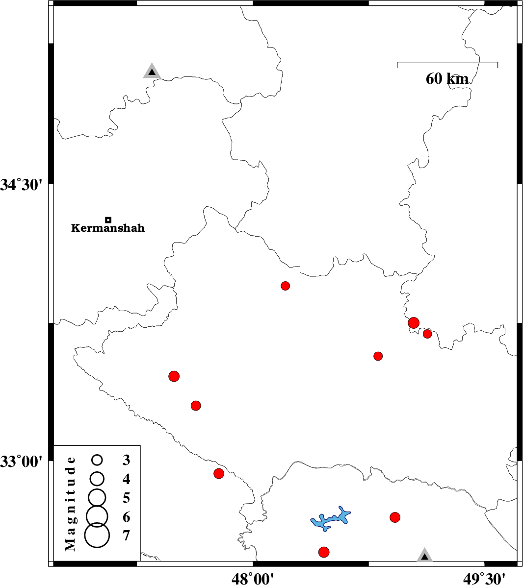 | 2009/03/21 | 21:13:01.0 | 01:43:01.0 | 32.93 | 47.78 | 14 | ML:3 | 25 km South of Pol-e dokhtar, Lorestan Province | ||