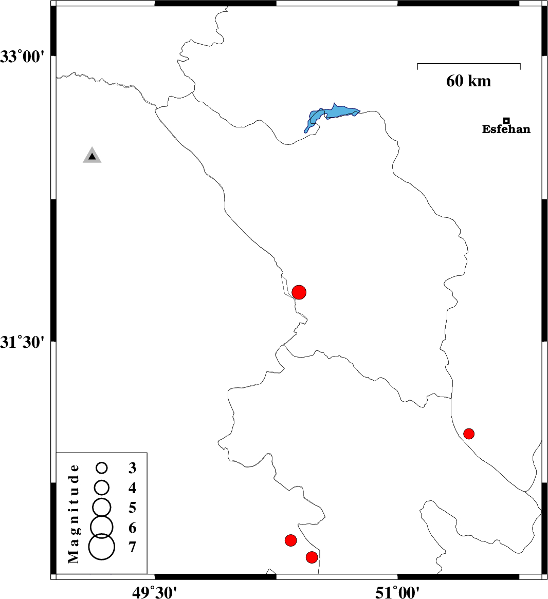 | 2009/04/04 | 18:59:20.2 | 23:29:20.2 | 31.76 | 50.39 | 15 | ML:4 | 35 km South-West of Ardel, Chaharmahal Bakhtiari Province | ||