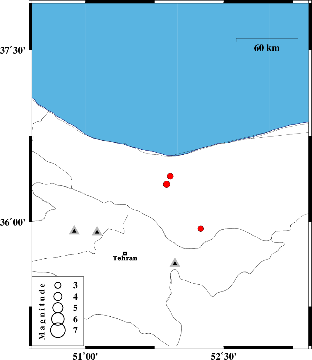 | 2009/04/02 | 20:18:00.1 | 00:48:00.1 | 35.94 | 52.25 | 14 | ML:2.8 | 29 km North-East of Damavand, Tehran Province |