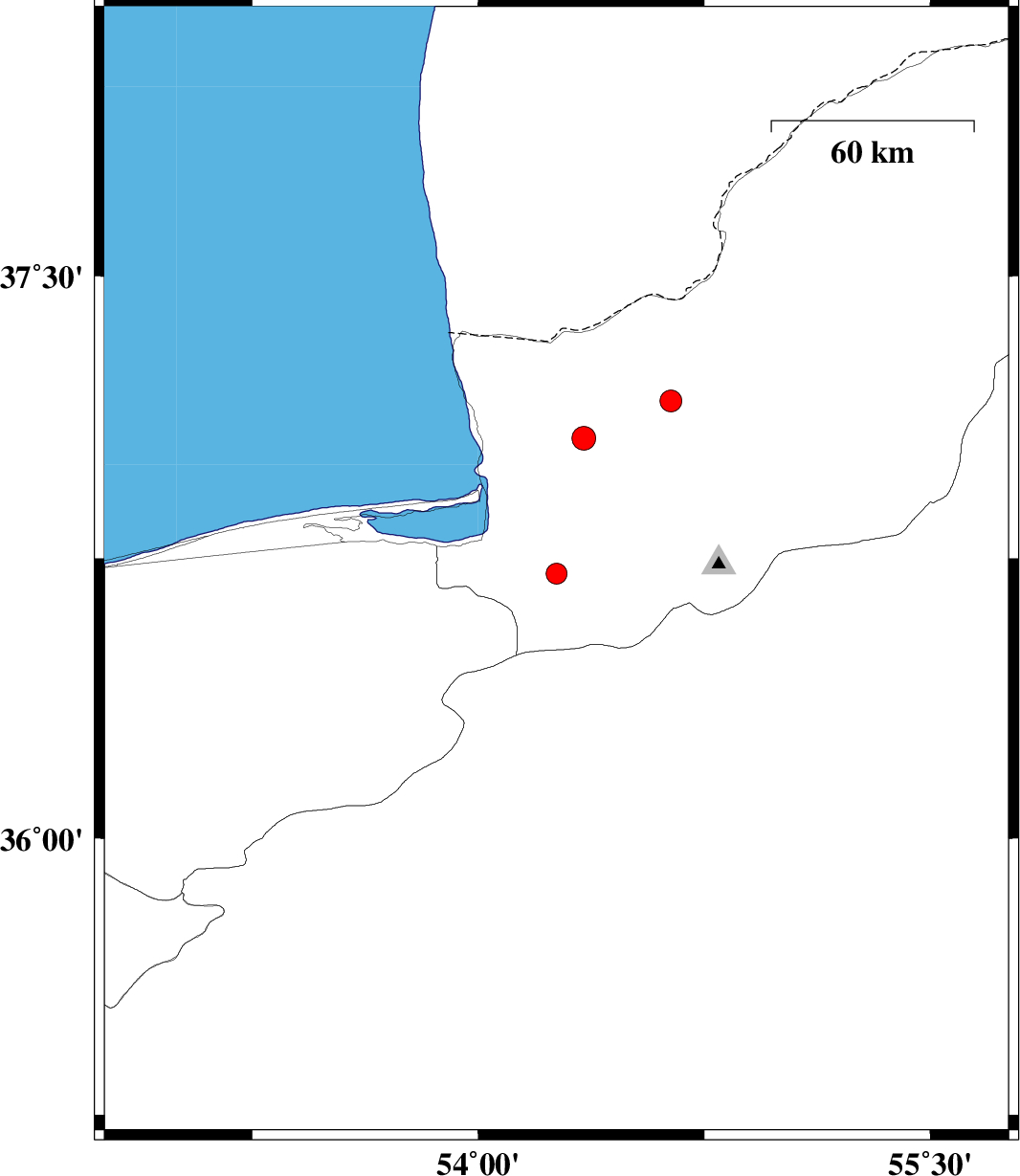 | 2009/04/05 | 06:24:42.1 | 10:54:42.1 | 36.71 | 54.26 | 15 | ML:3.1 | 16 km East of Kordkuy, Golestan Province | ||