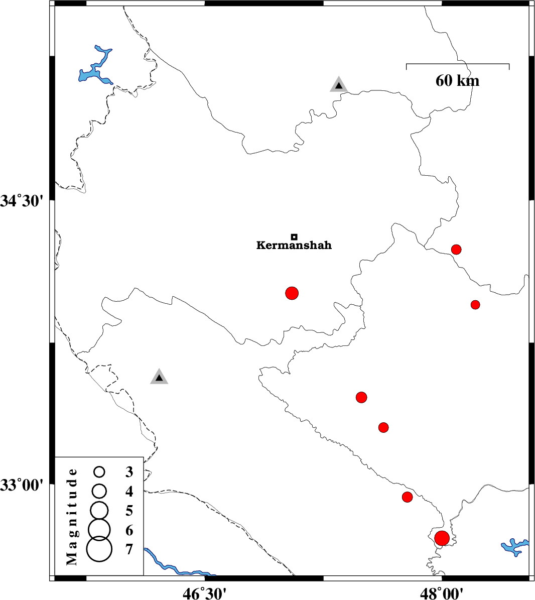| 2009/04/08 | 13:36:21.7 | 18:06:21.7 | 34.01 | 47.05 | 18 | ML:3.6 | 32 km South of Kermanshah, Kermanshah Province | ||