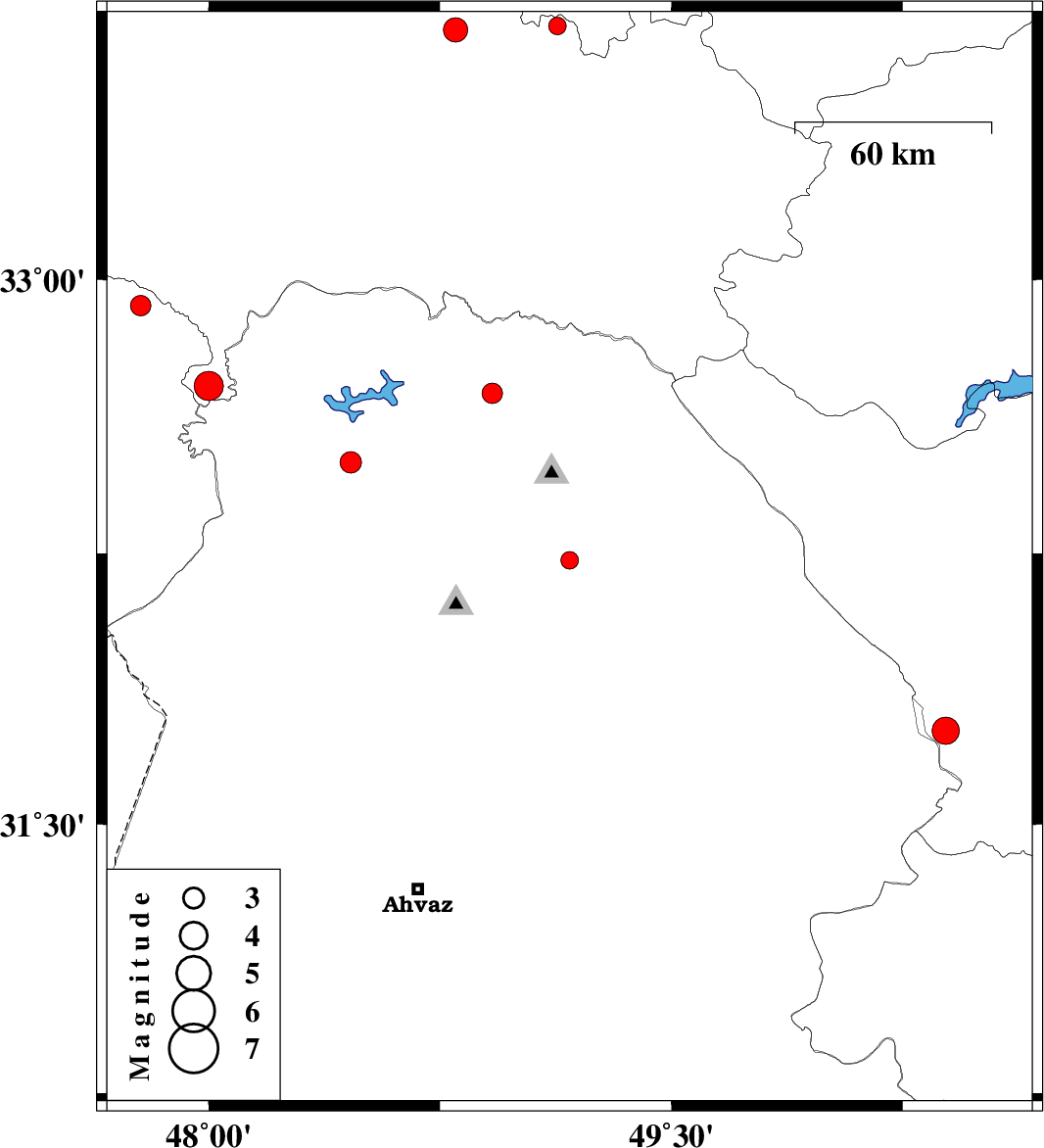 | 2009/04/07 | 17:32:52.5 | 22:02:52.5 | 32.71 | 48 | 14 | ML:4.3 | 43 km North-West of Andimeshk, Khoozestan Province | ||
