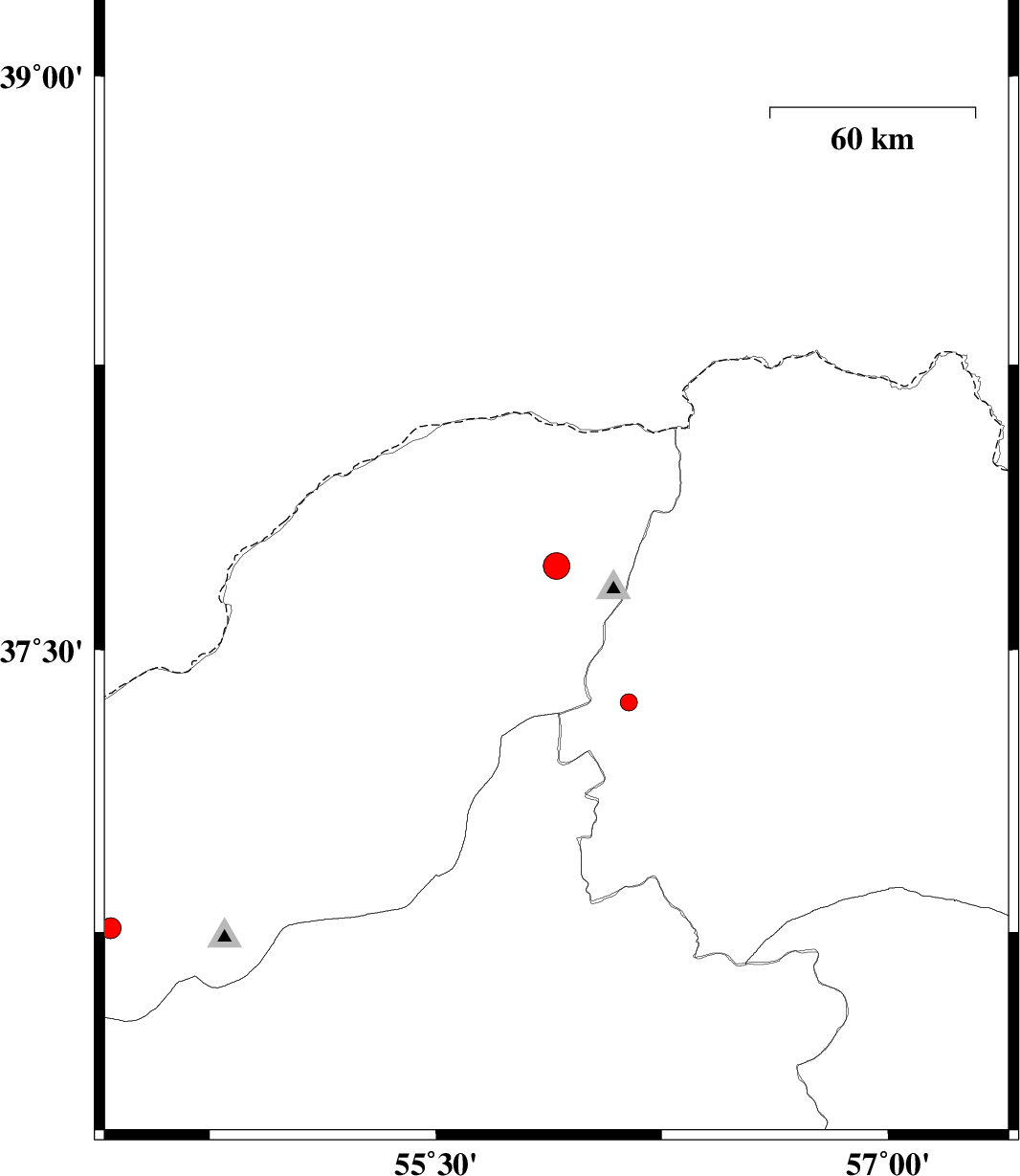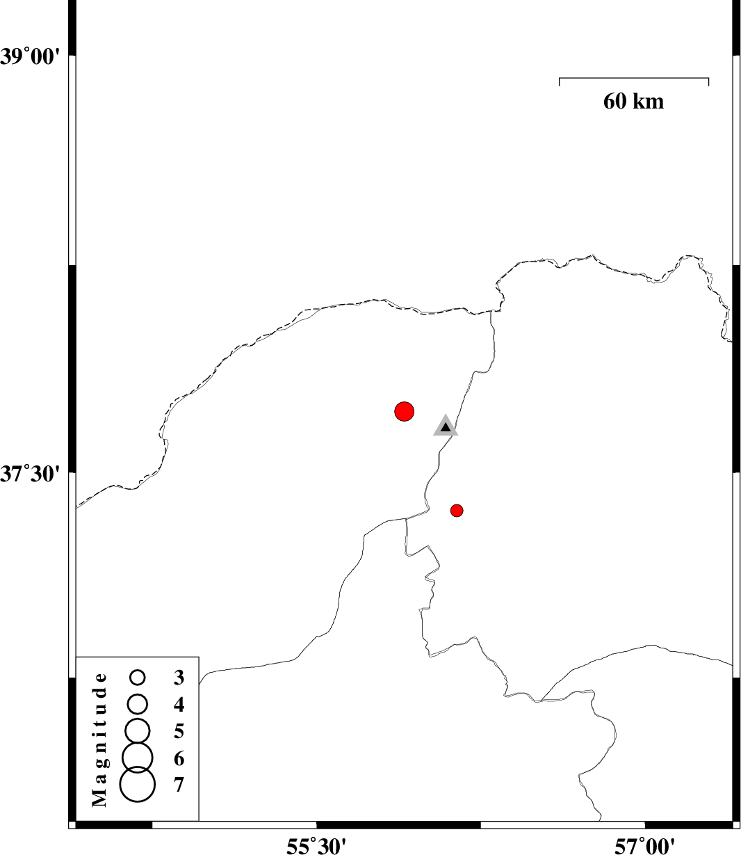 | 2009/04/15 | 07:54:02.0 | 12:24:02.0 | 37.72 | 55.9 | 14 | ML:3.9 | 52 km North-East of Kalaleh, Golestan Province | ||