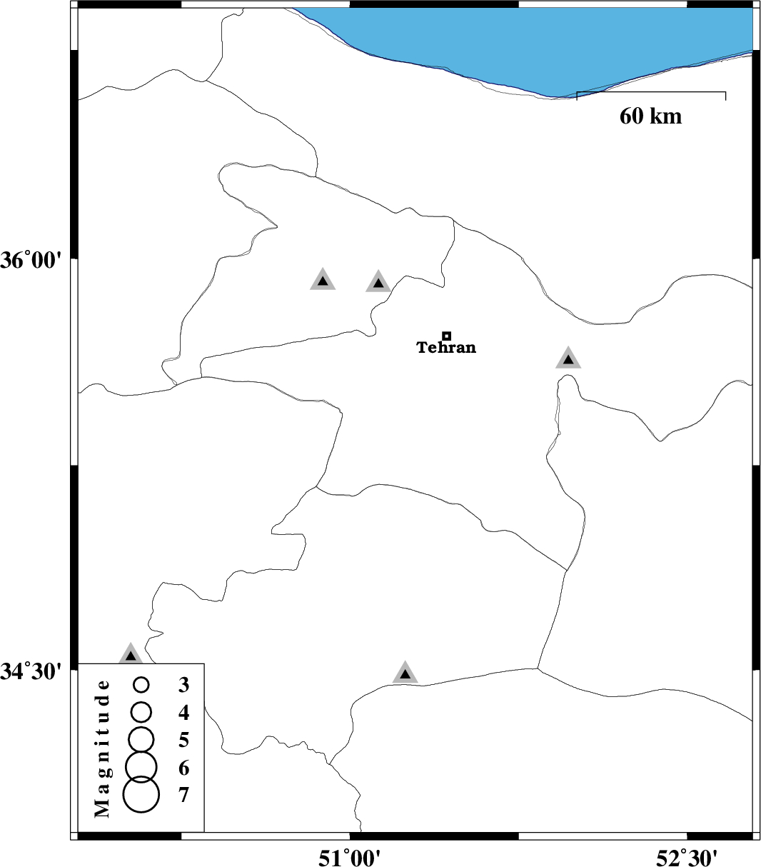 | 2009/04/15 | 07:57:42.0 | 12:27:42.0 | 35.4 | 51.29 | 41 | ML:3.1 | 19 km South of Eslamshahr, Tehran Province |