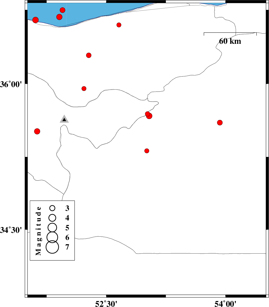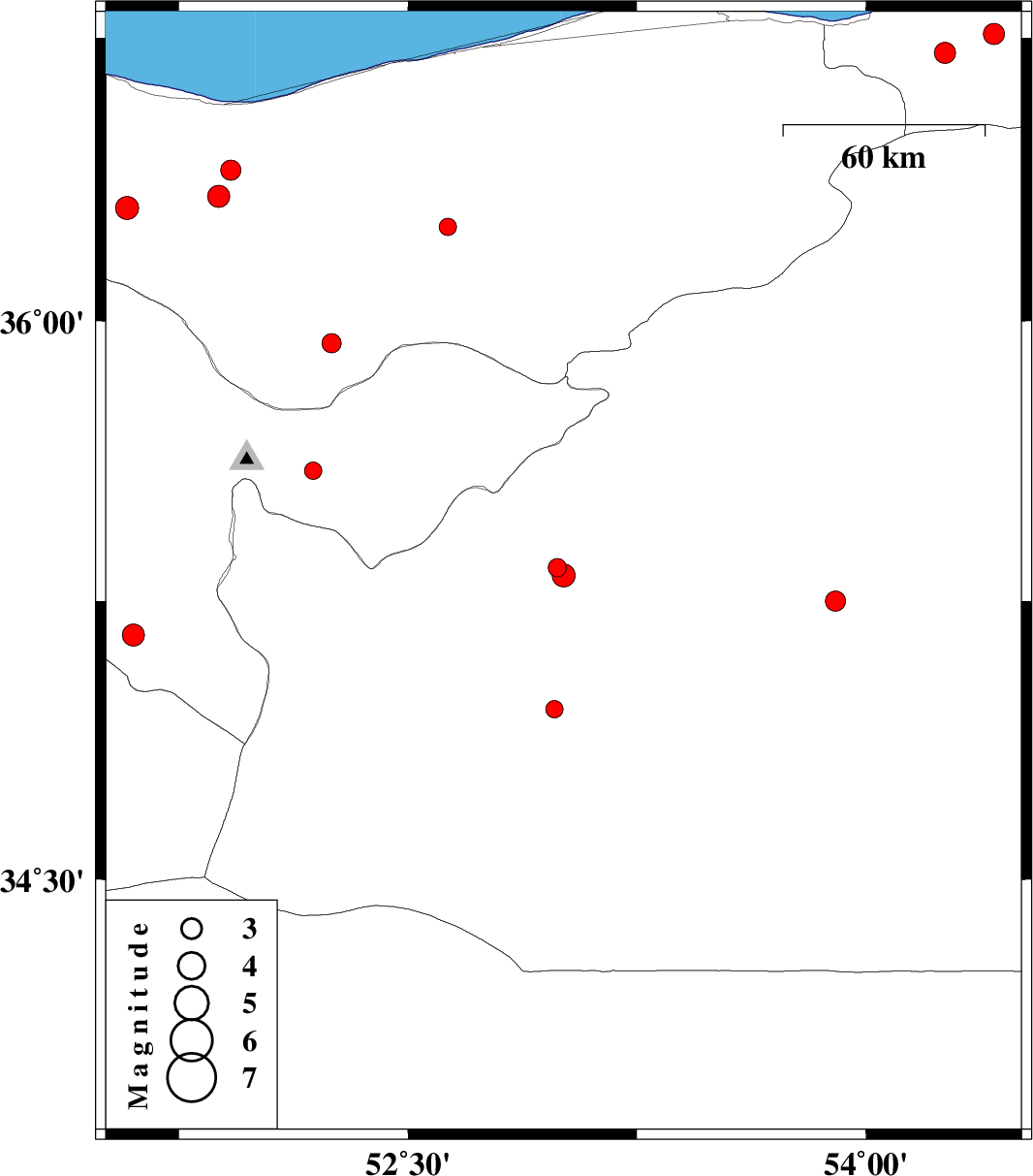 2009/03/19 18:45:39.7 22:15:39.7 35.652.1914 ML:2.6 16 km South-East of Damavand, Tehran Province