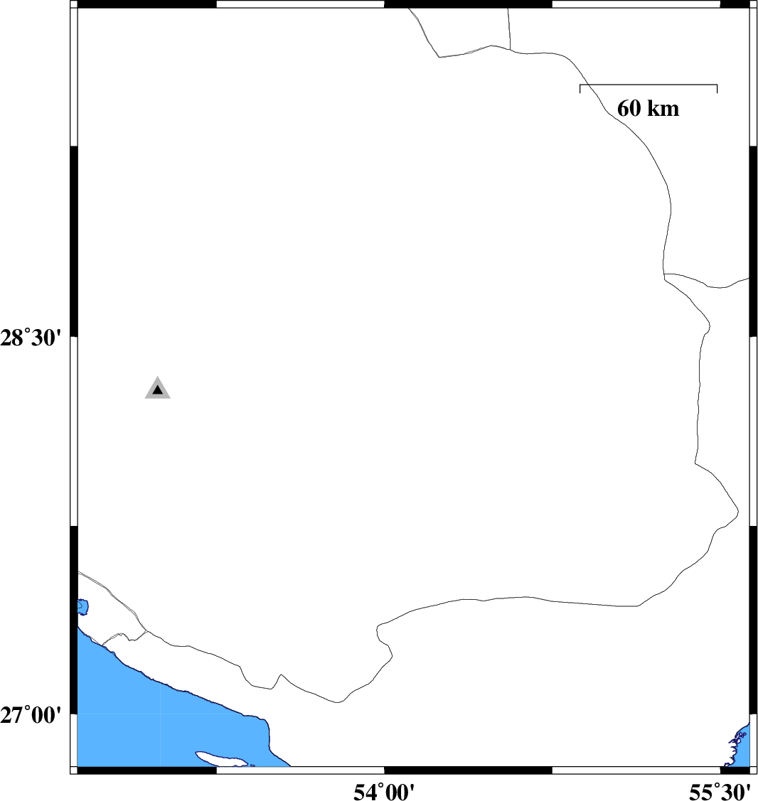 | 2009/04/21 | 16:43:37.1 | 21:13:37.1 | 28.12 | 54.23 | 15 | ML:3 | 49 km North-West of Lar, Fars Province | ||