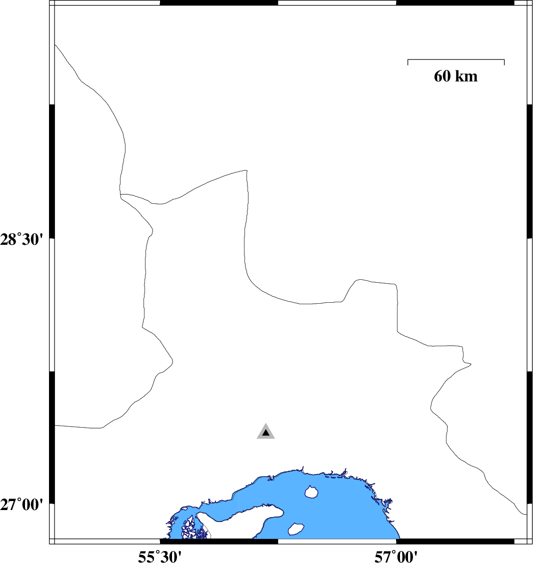 | 2009/04/07 | 12:07:39.5 | 16:37:39.5 | 27.8 | 56.65 | 14 | ML:3.2 | 71 km North-West of Dehbarez, Hormozgan Province | ||