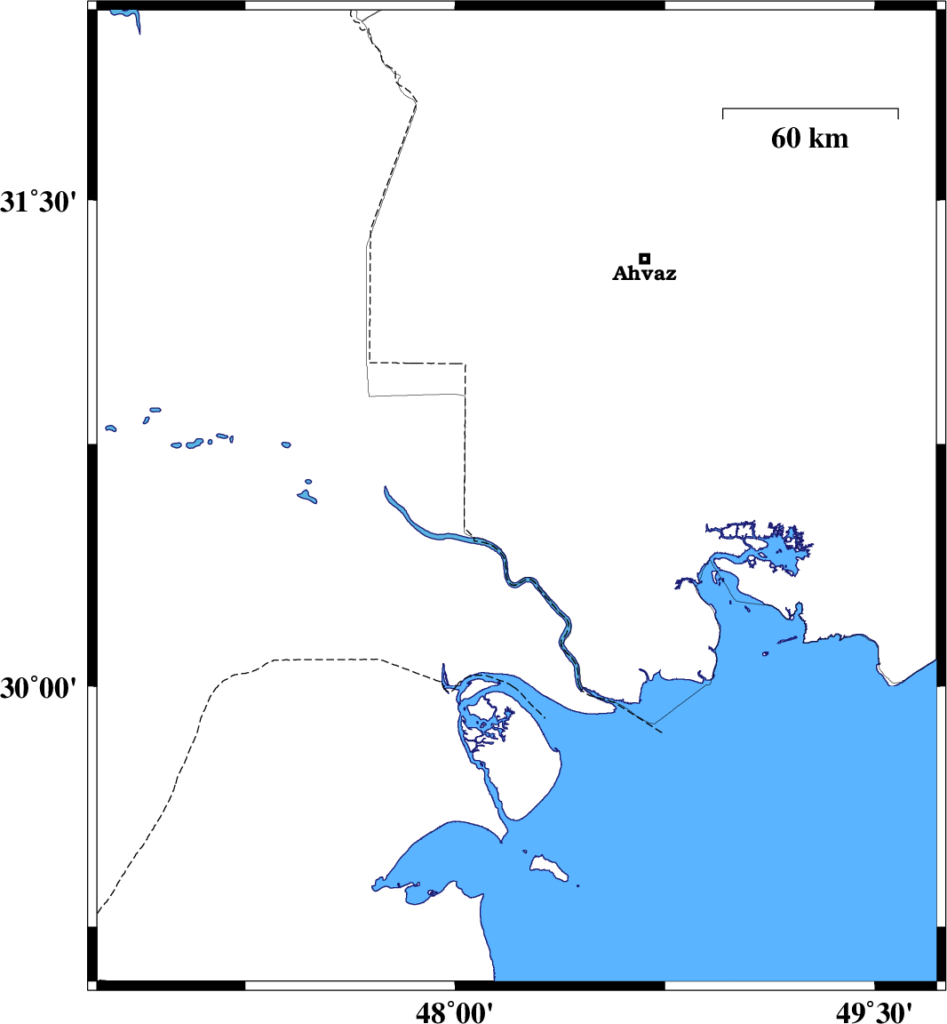 Map Region : lat:29.08-32.08  lon:46.72-49.72