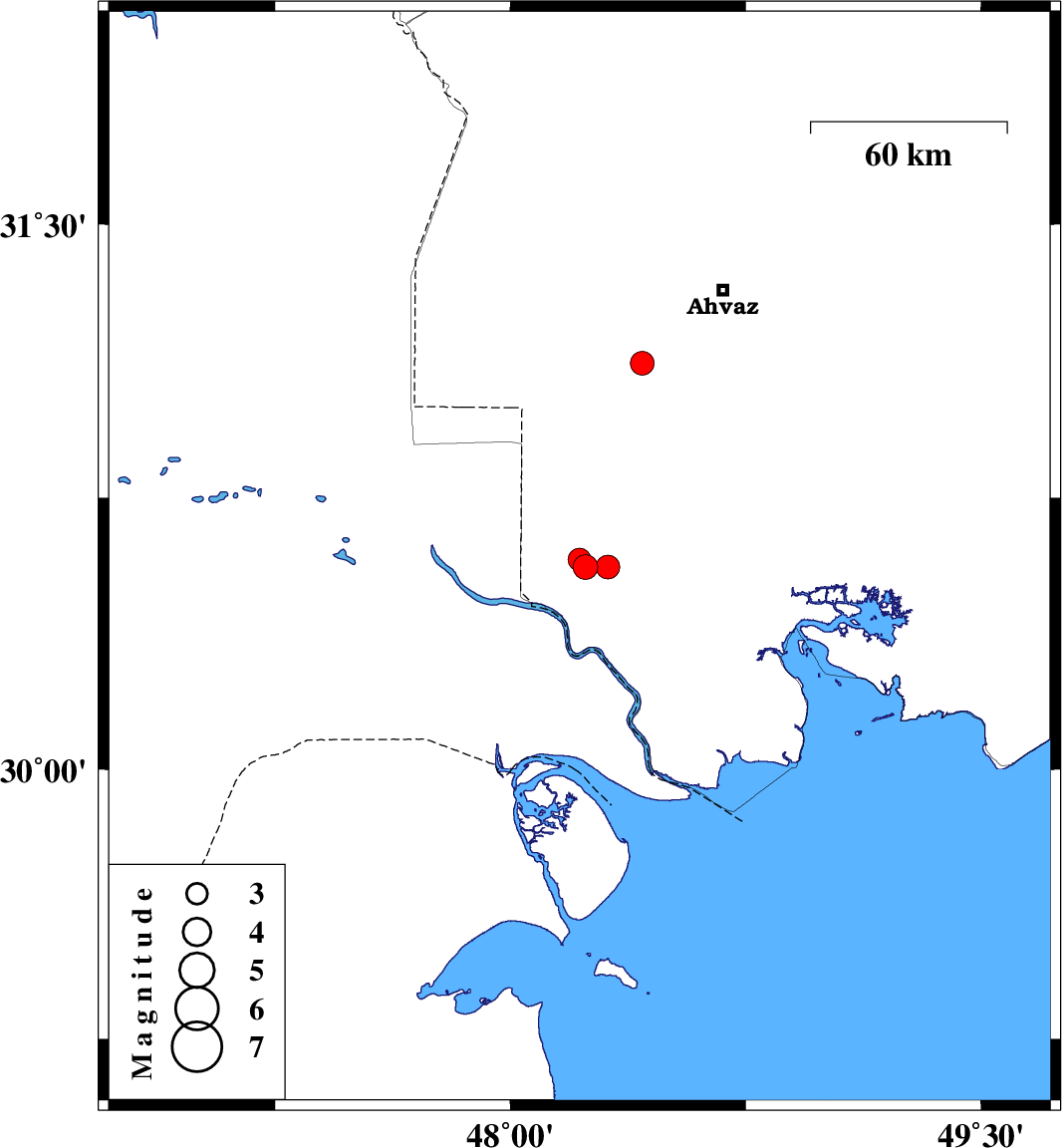 2009/04/22 21:46:14.5 02:16:14.5 31.1248.4214 ML:3.4 32 km South-West of Ahvaz, Khoozestan Province
