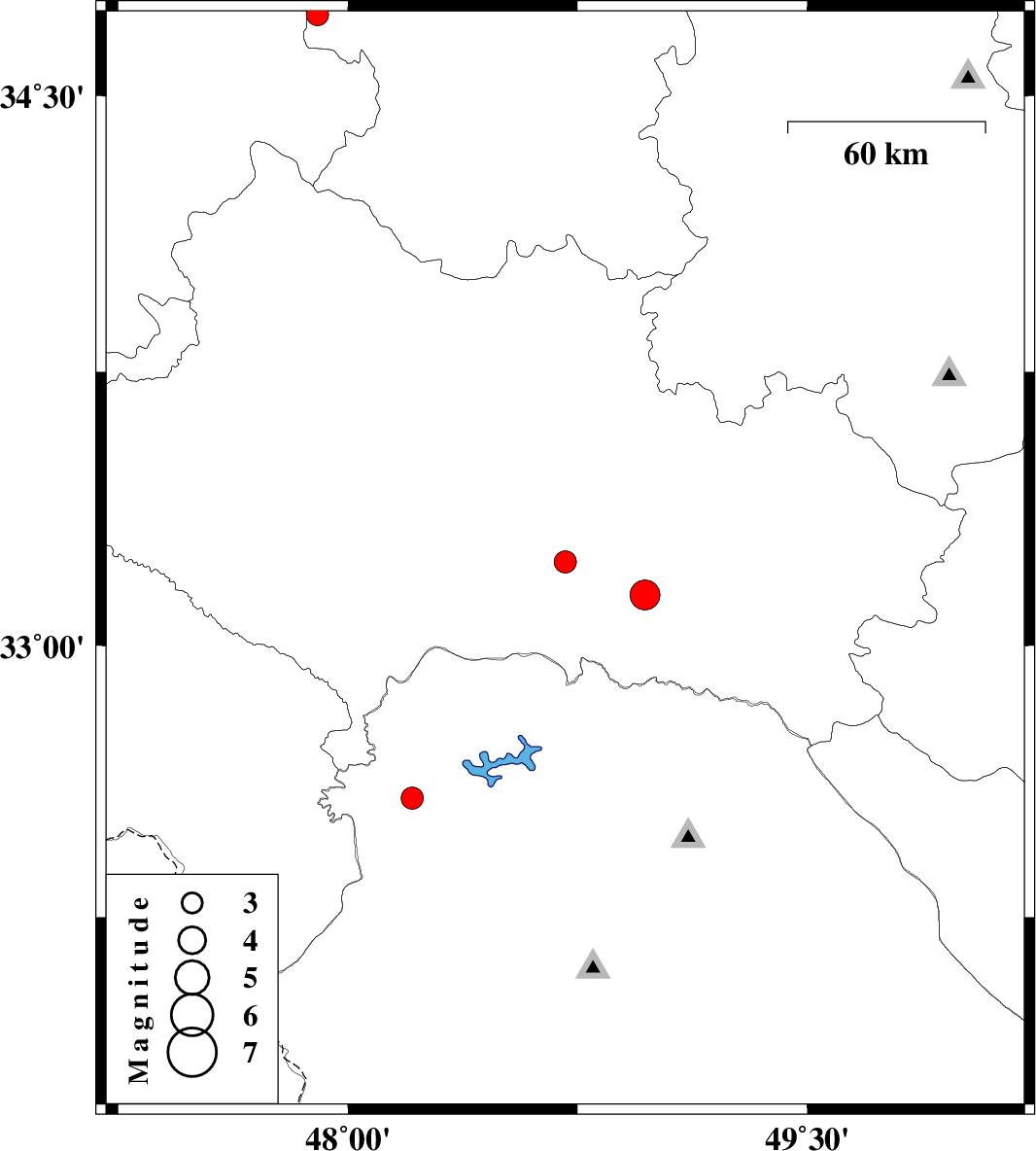 | 2009/04/28 | 05:44:41.9 | 10:14:41.9 | 33.23 | 48.71 | 15 | ML:3.2 | 42 km South-East of Khorramabad, Lorestan Province | ||