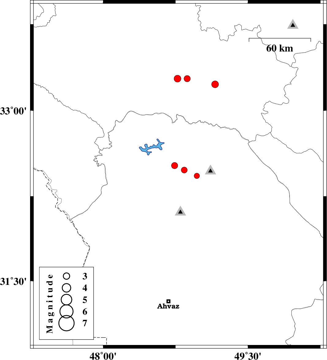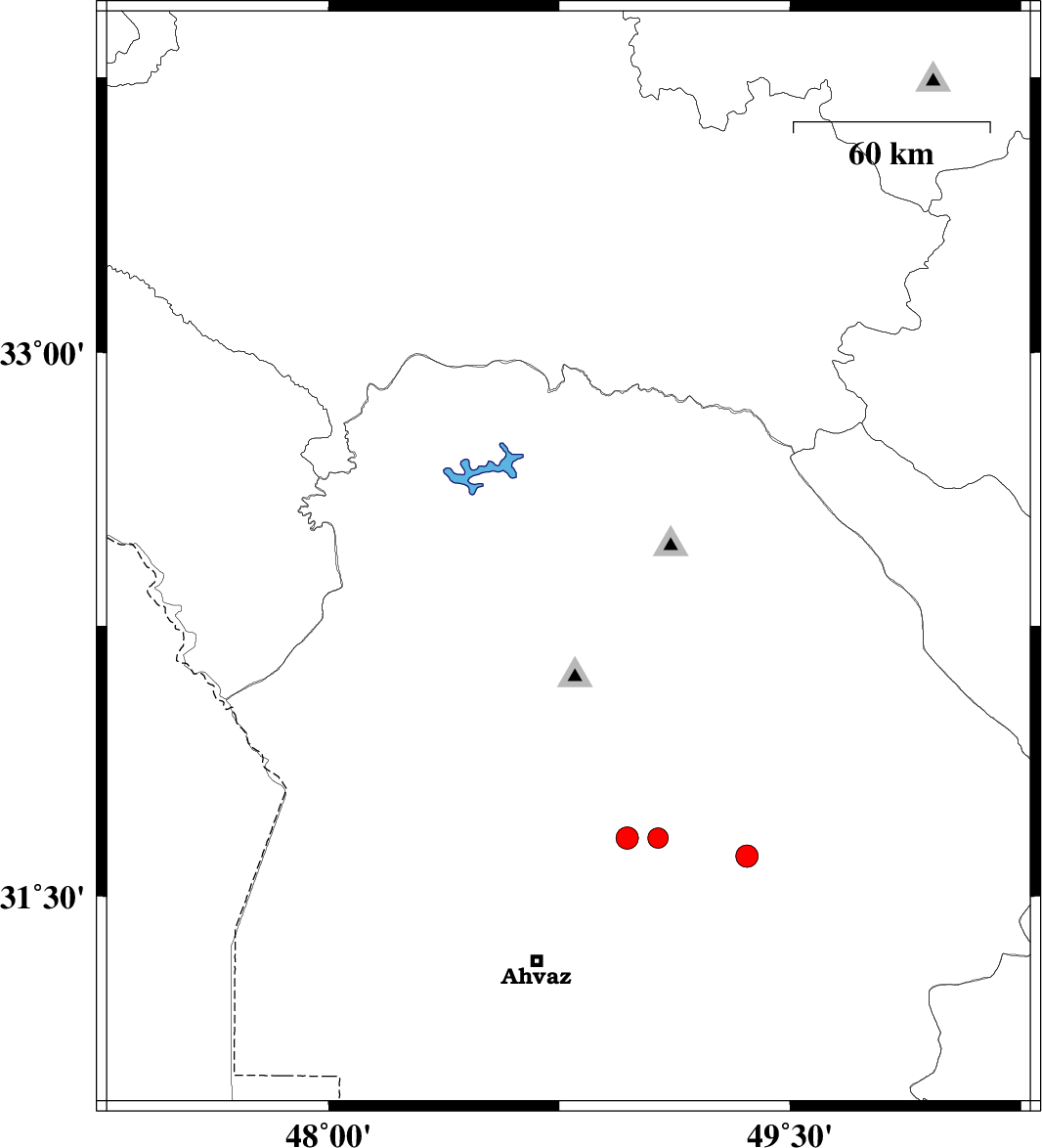 | 2009/05/03 | 09:41:56.8 | 14:11:56.8 | 32.43 | 48.78 | 14 | ML:2.8 | 30 km West of Lali, Khoozestan Province | ||