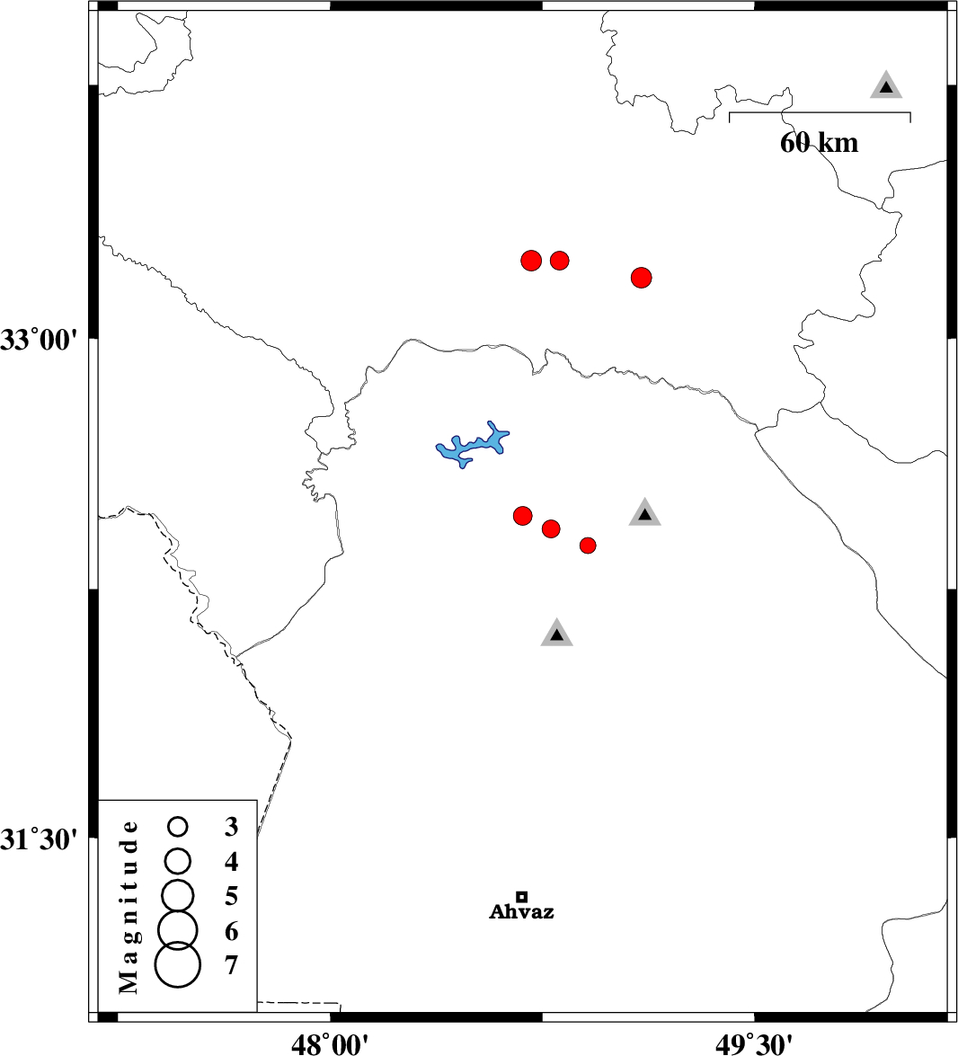 | 2009/05/03 | 09:41:56.8 | 14:11:56.8 | 32.43 | 48.78 | 14 | ML:2.8 | 30 km West of Lali, Khoozestan Province | ||