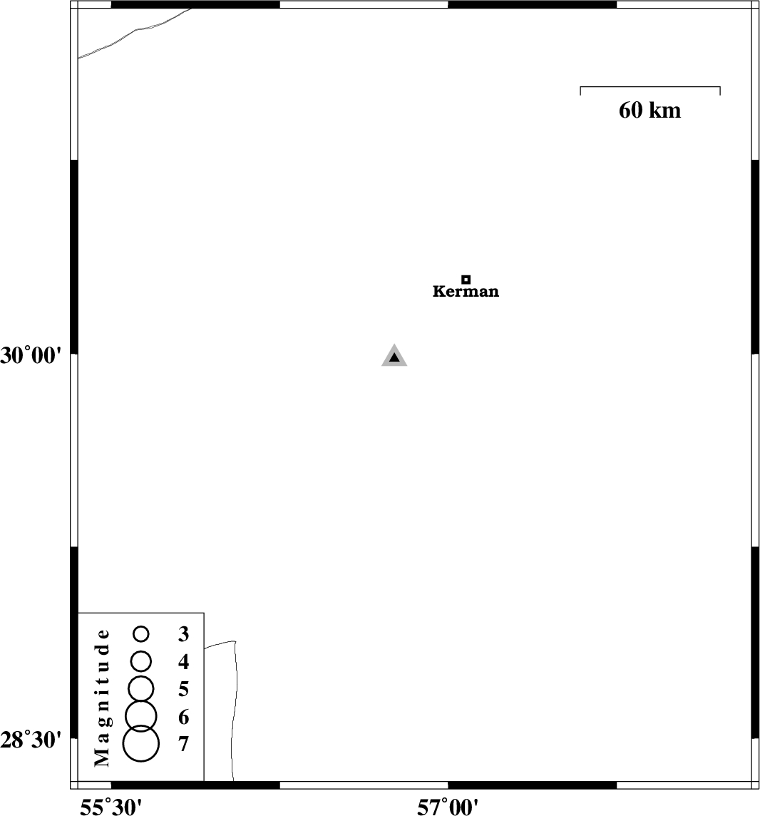 | 2009/05/04 | 01:10:47.0 | 05:40:47.0 | 29.83 | 56.85 | 9 | ML:3.6 | 28 km East of Bardsir, Kerman Province |
