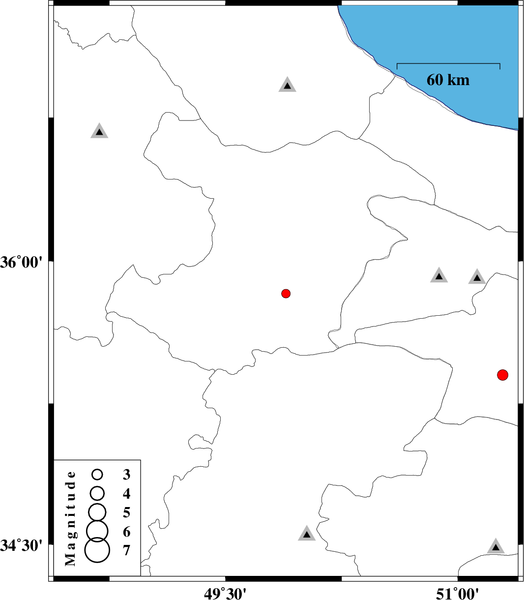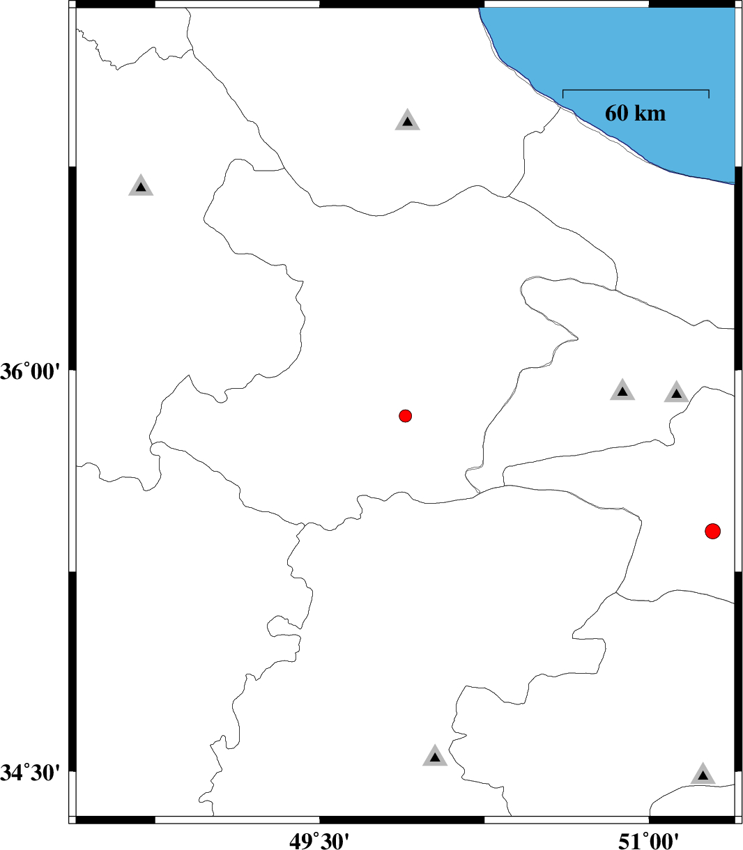 | 2009/05/05 | 18:47:49.9 | 23:17:49.9 | 35.83 | 49.89 | 46 | ML:2.5 | 17 km West of Buinzara, Ghazvin Province | ||